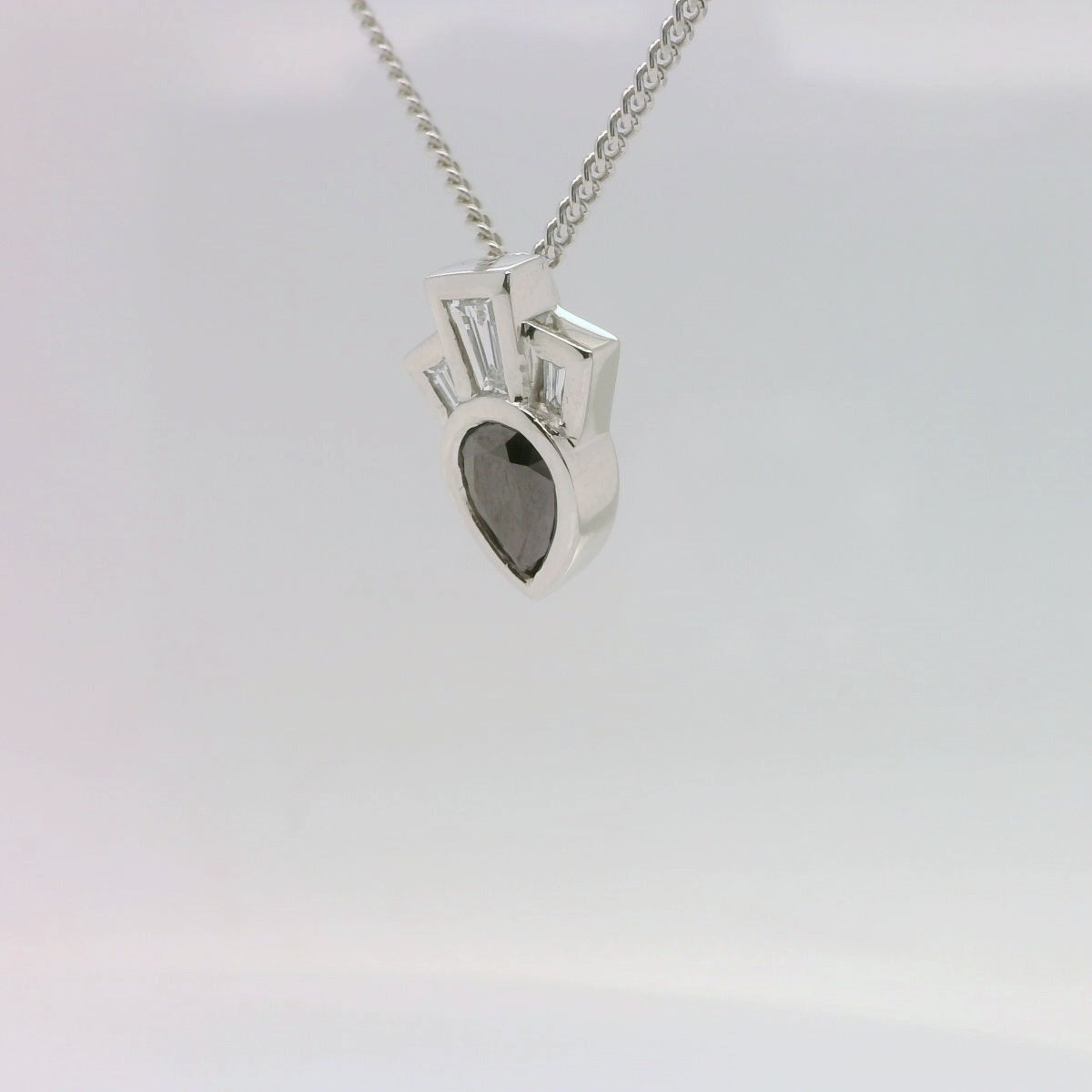 Bold sophistication meets timeless elegance in this handcrafted platinum pendant, showcasing a striking contrast of black and white diamonds. Expertly set in enduring platinum, the design highlights the natural brilliance of white diamonds alongside the mysterious allure of black diamonds, creating a captivating balance of light and depth.
