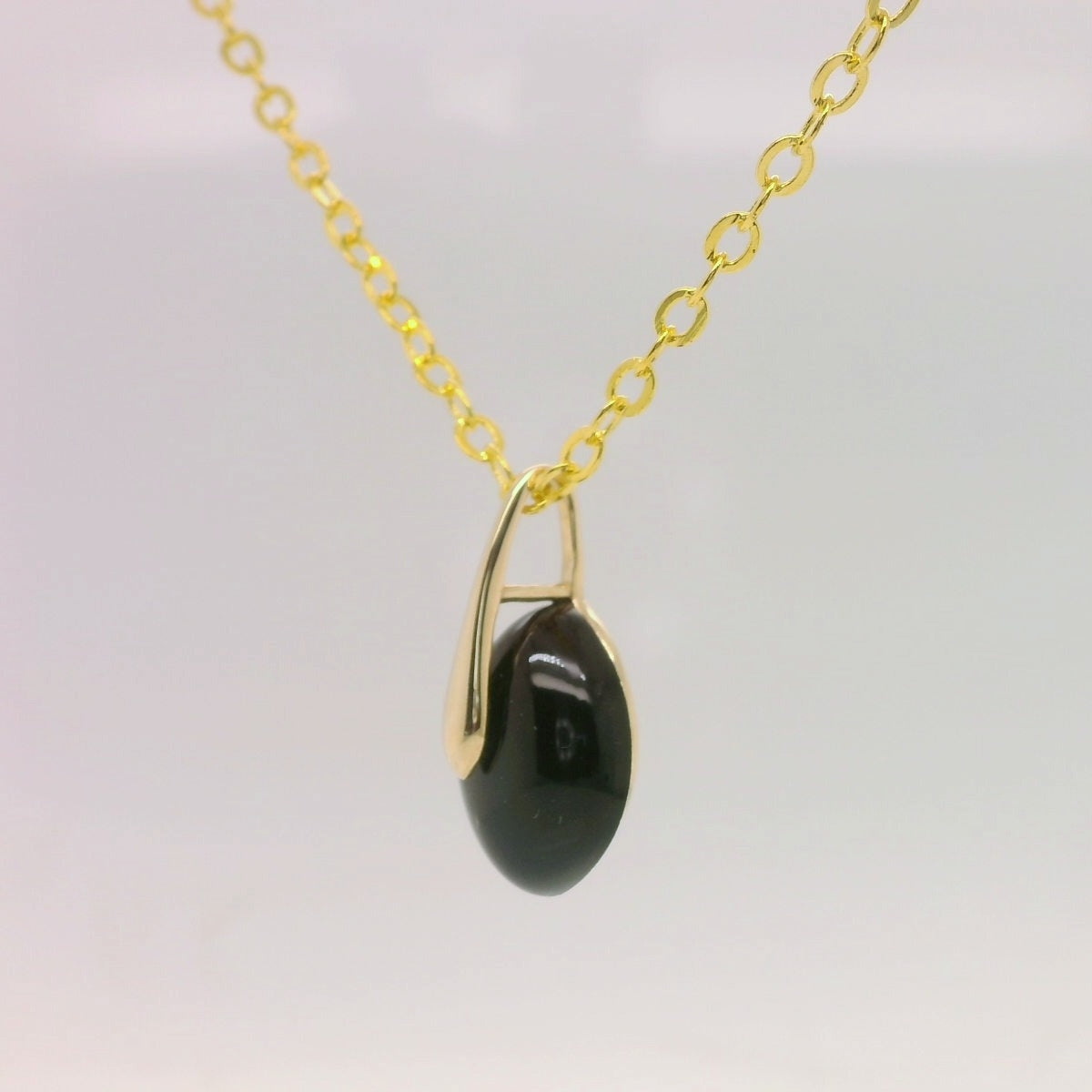 9ct Yellow Gold Black Onyx Pendant with Gold-Plated Sterling Silver Chain