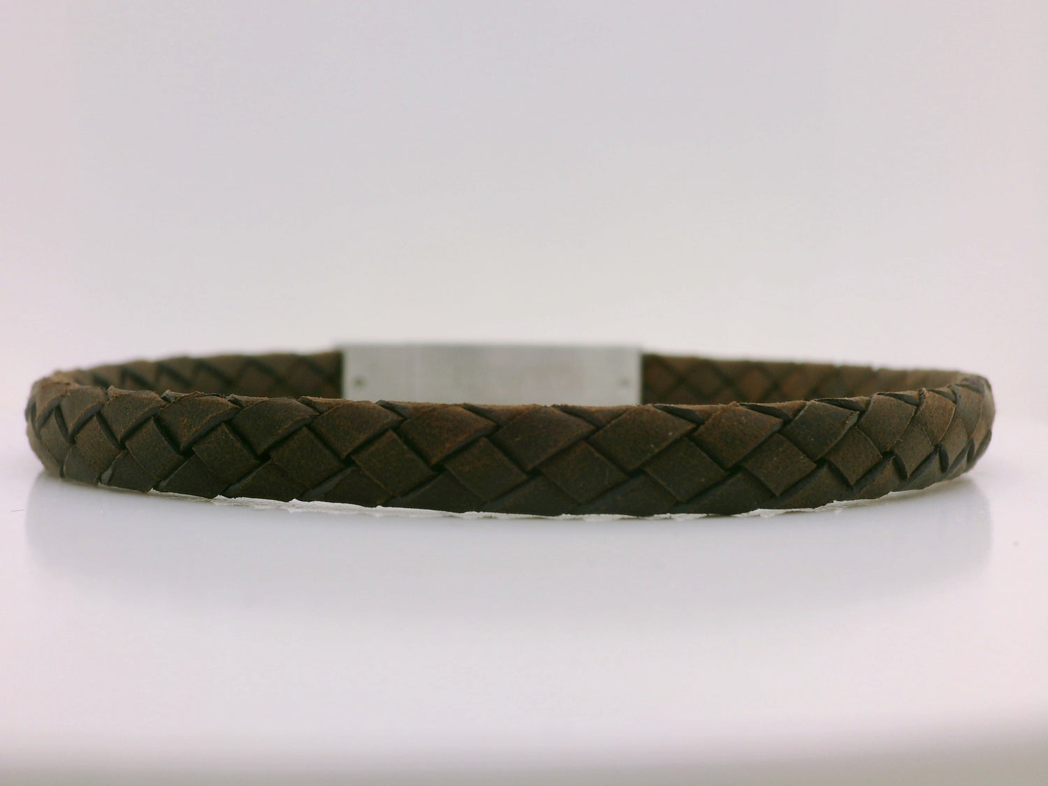 This classic men’s bracelet features a rich brown braided suede band, paired with a sleek stainless steel clasp for a modern, secure finish. Durable and comfortable, it’s perfect for everyday wear or layering with other accessories, adding a touch of rugged sophistication to any look.