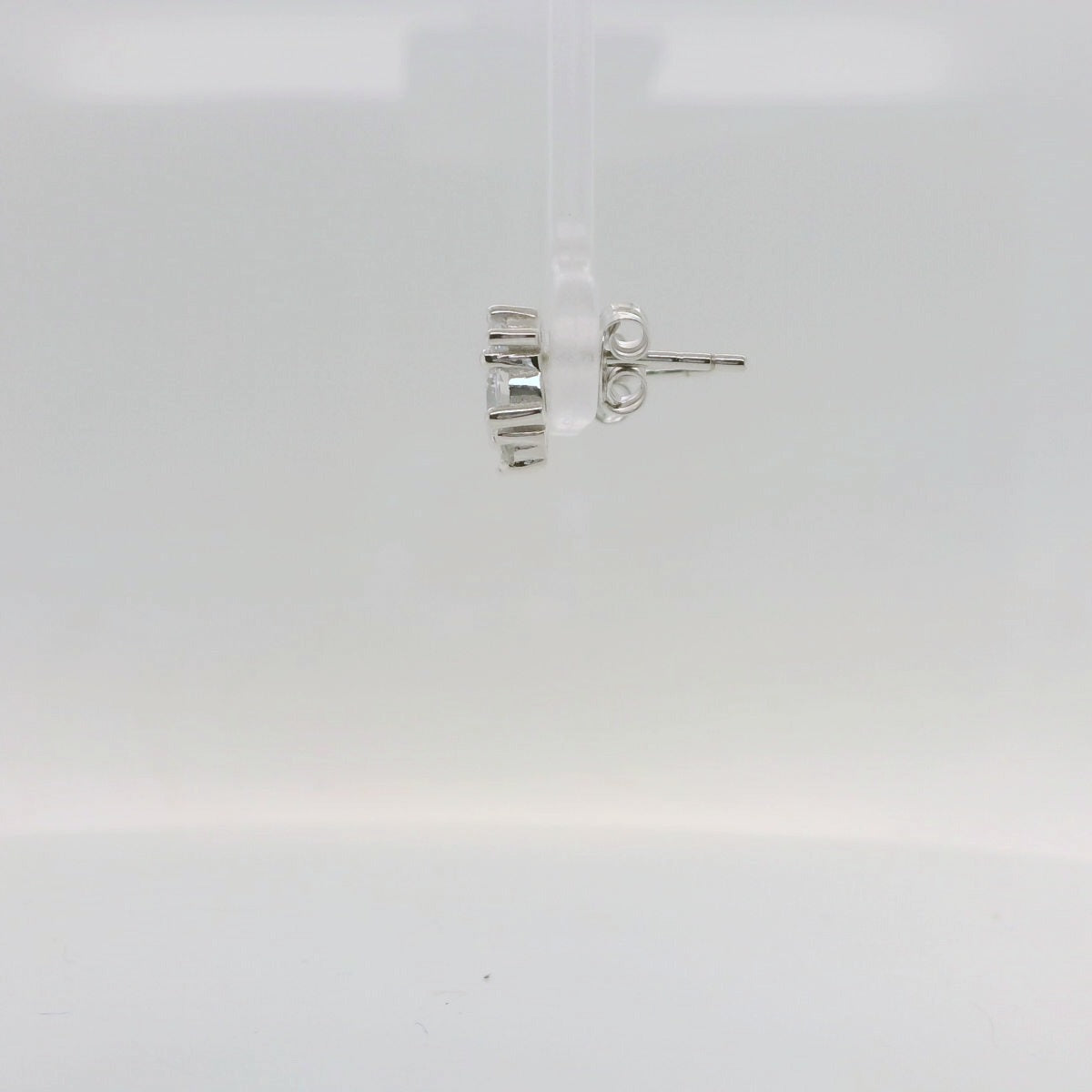 Ellani Collections - Sterling Silver white cubic zirconia set multi sized cluster stud earrings
