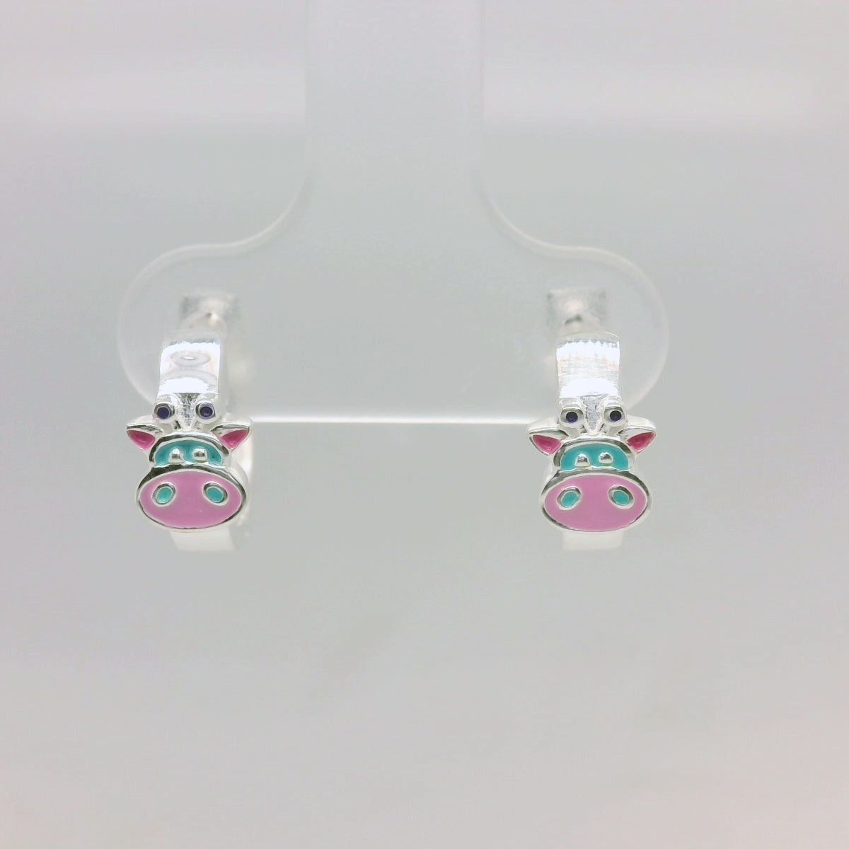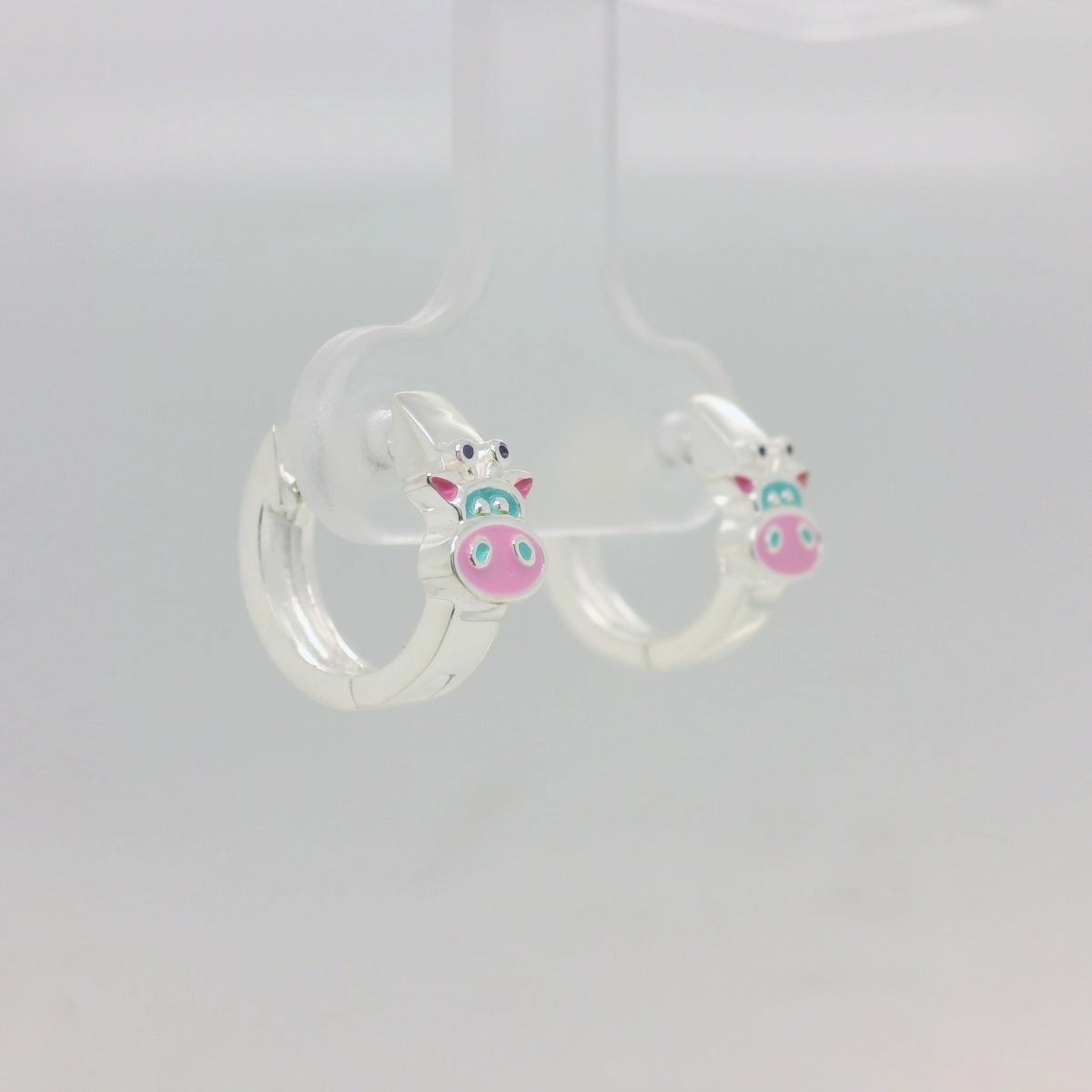 Add a playful touch to your little one's jewellery collection with these sterling silver kids' huggie earrings, featuring a bright pastel-coloured cow design. Fun, cheerful, and crafted for comfort, these huggies are perfect for everyday wear. The secure clasp and lightweight feel make them ideal for young ears, while the charming cow adds a pop of colour and personality.