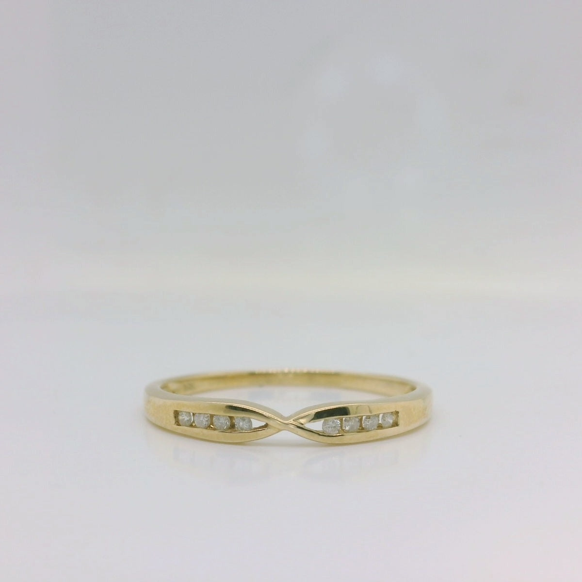 9ct Yellow Gold Channel Set Crossover Ring with Diamonds – Size Q