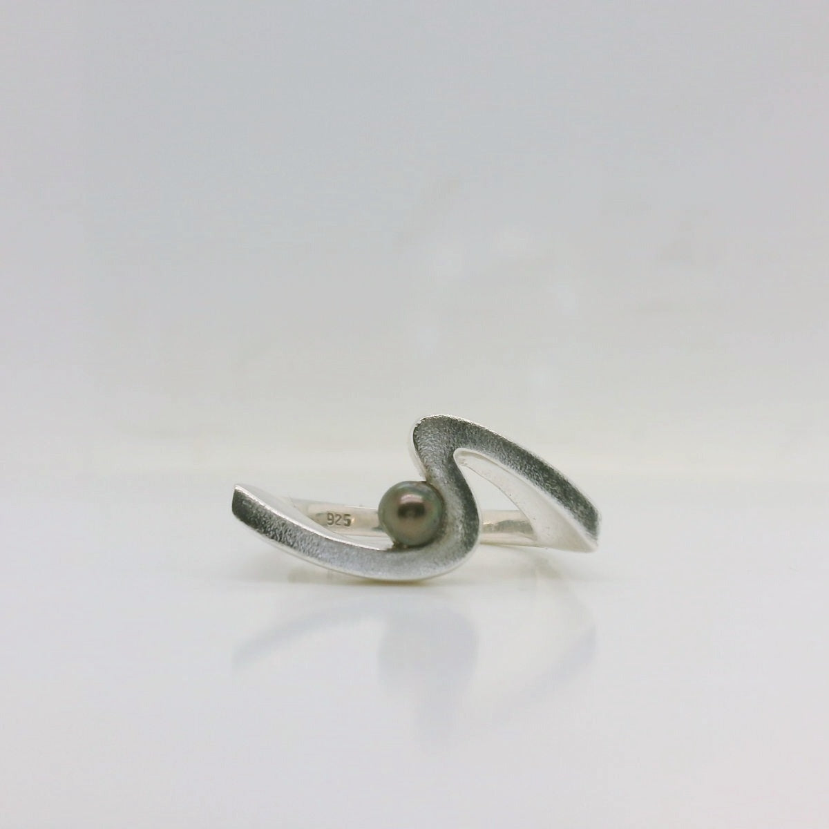 Capture the beauty of the sea with this sterling silver wave ring, gracefully set with a lustrous 4mm freshwater black pearl. Featuring a gentle 6.5mm ring height and a sleek 2.6mm band width, this piece combines fluid design with timeless elegance. Sized N and adjustable for the perfect fit, it’s ideal for those who love unique, nature-inspired jewellery.