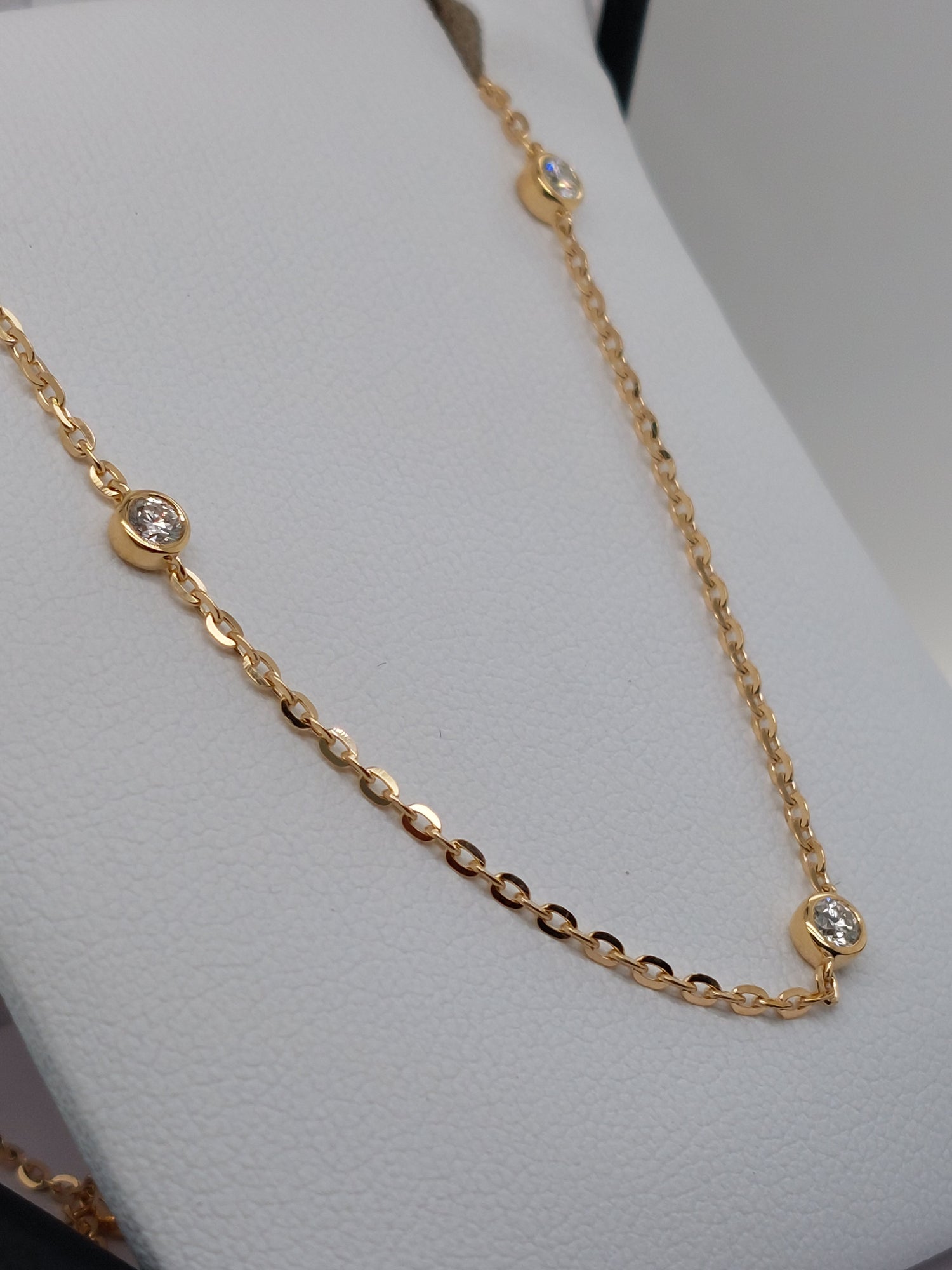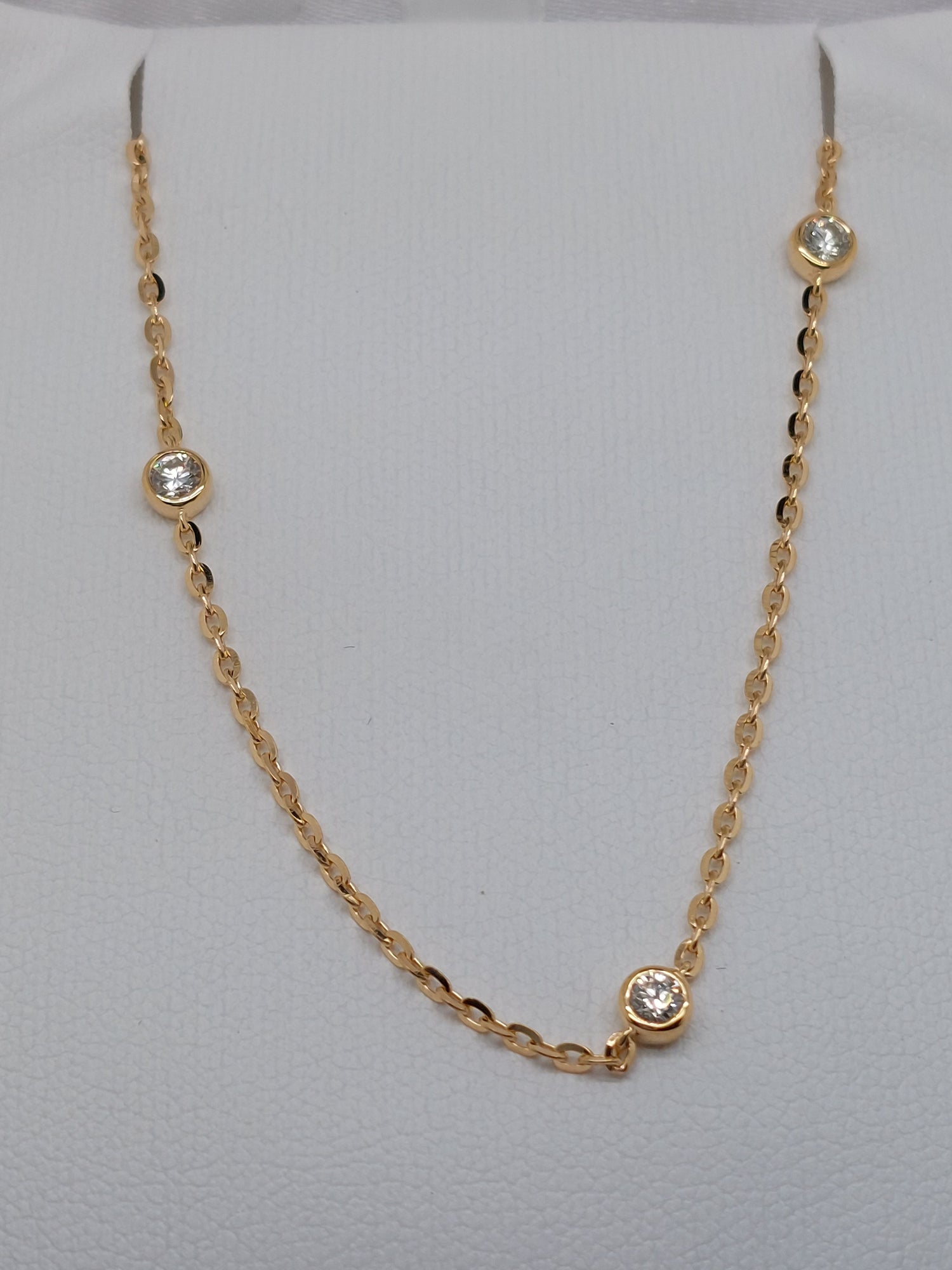 18ct yellow gold necklace, set with 7 diamonds spaced around the chain