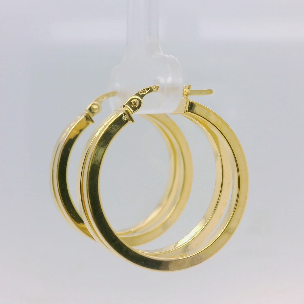 Make a modern statement with these 9ct Yellow Gold Square Tube Double Hoop Earrings. Featuring a sleek square-profile design and a stylish double hoop structure, they combine contemporary flair with classic elegance.