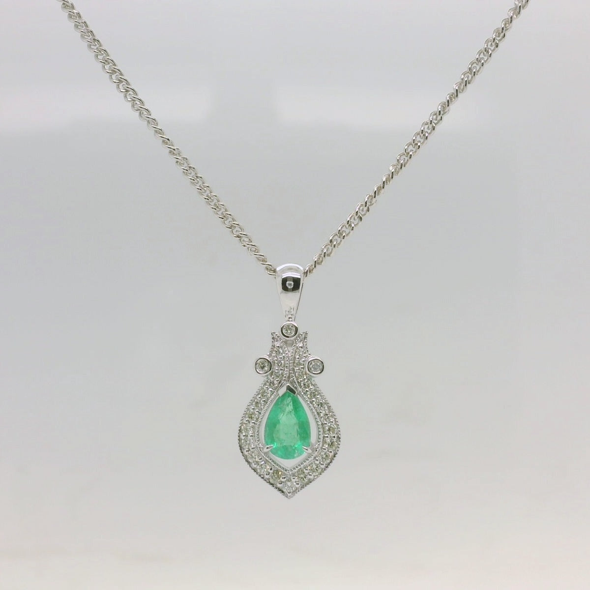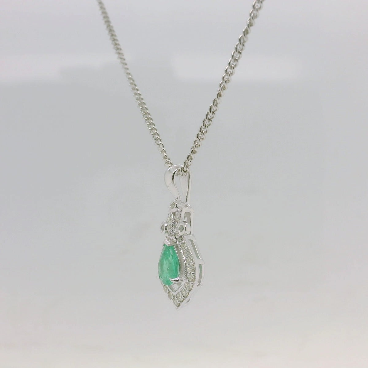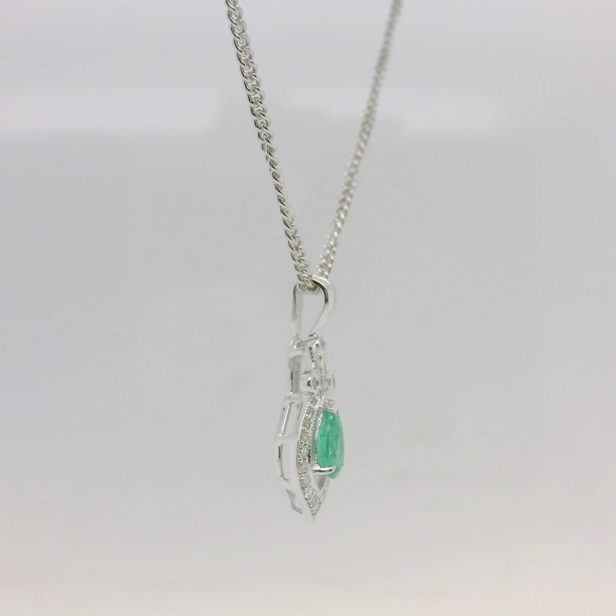 Pendant Only – 9ct White Gold Emerald & Diamond Pendant