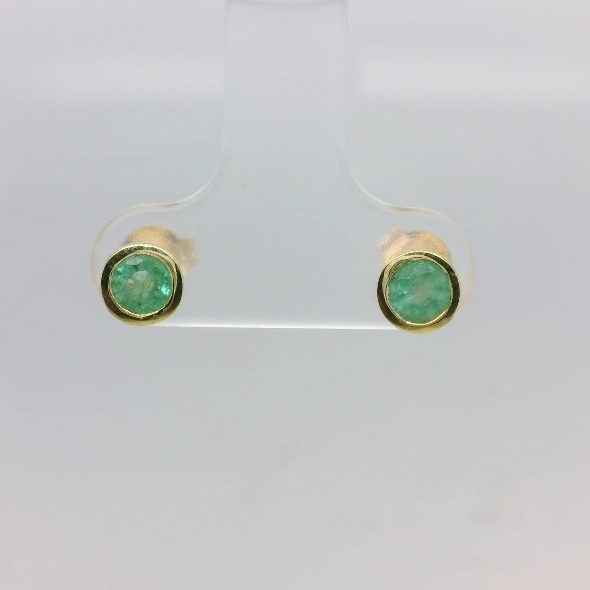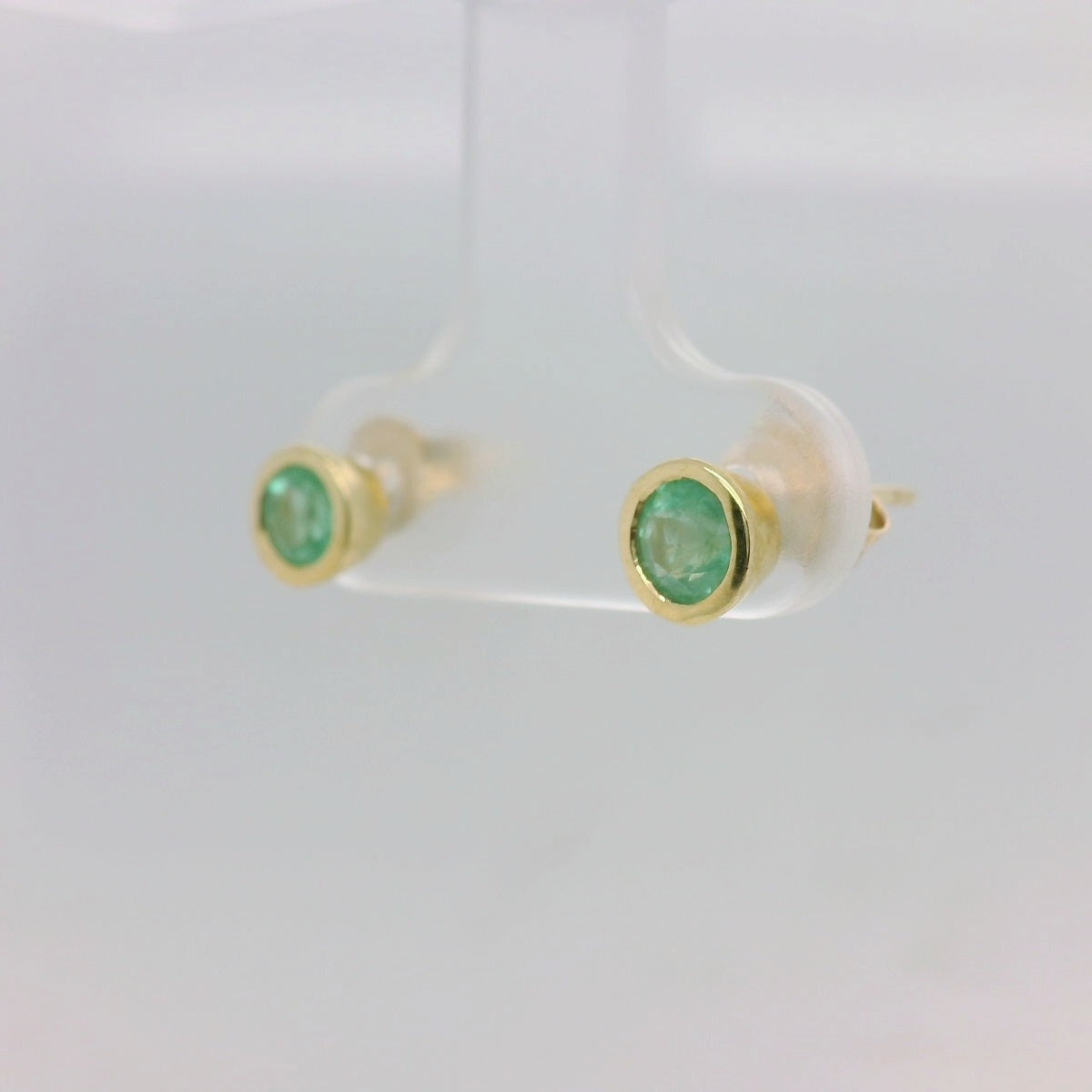 9ct Yellow Gold Rub-Over Set Emerald Stud Earrings