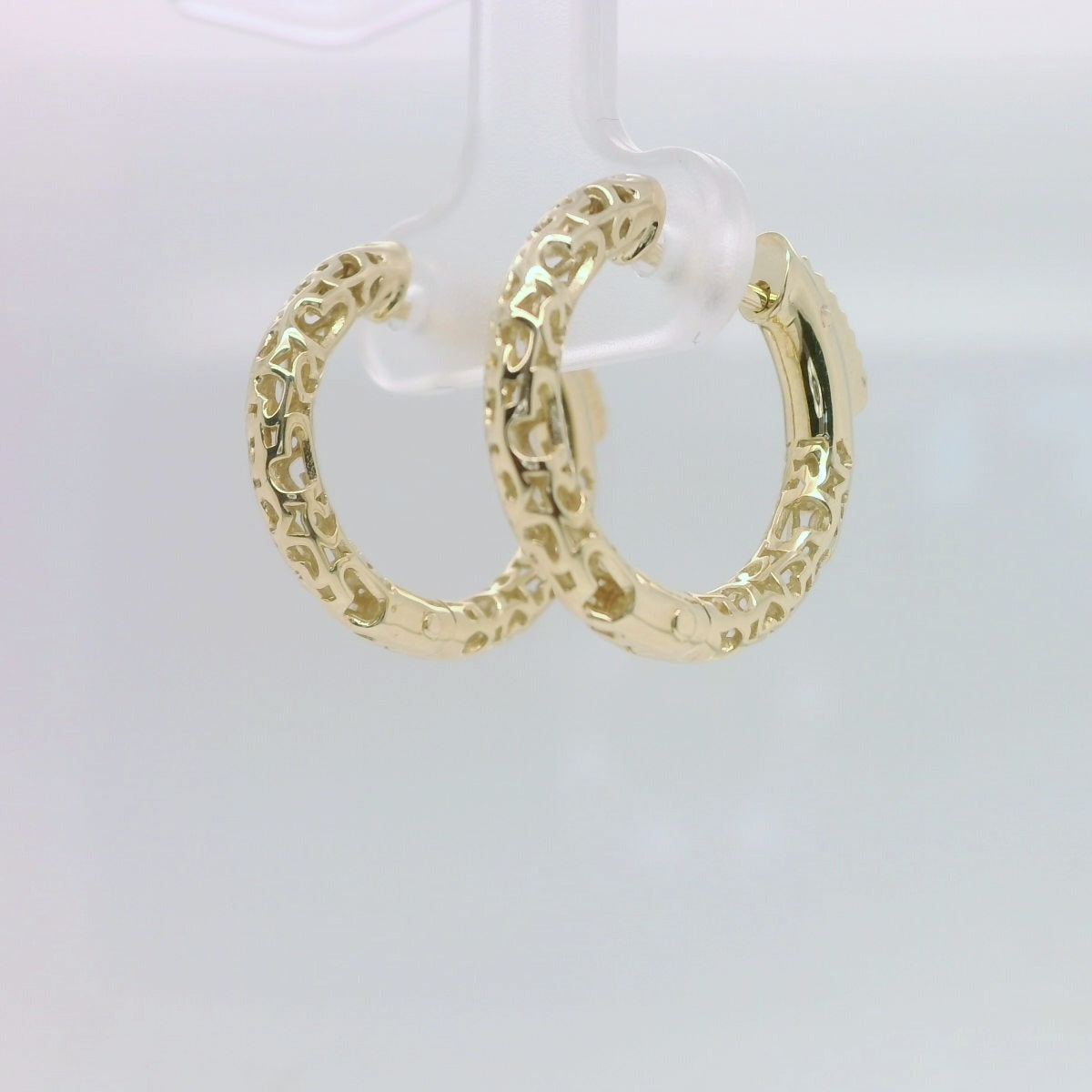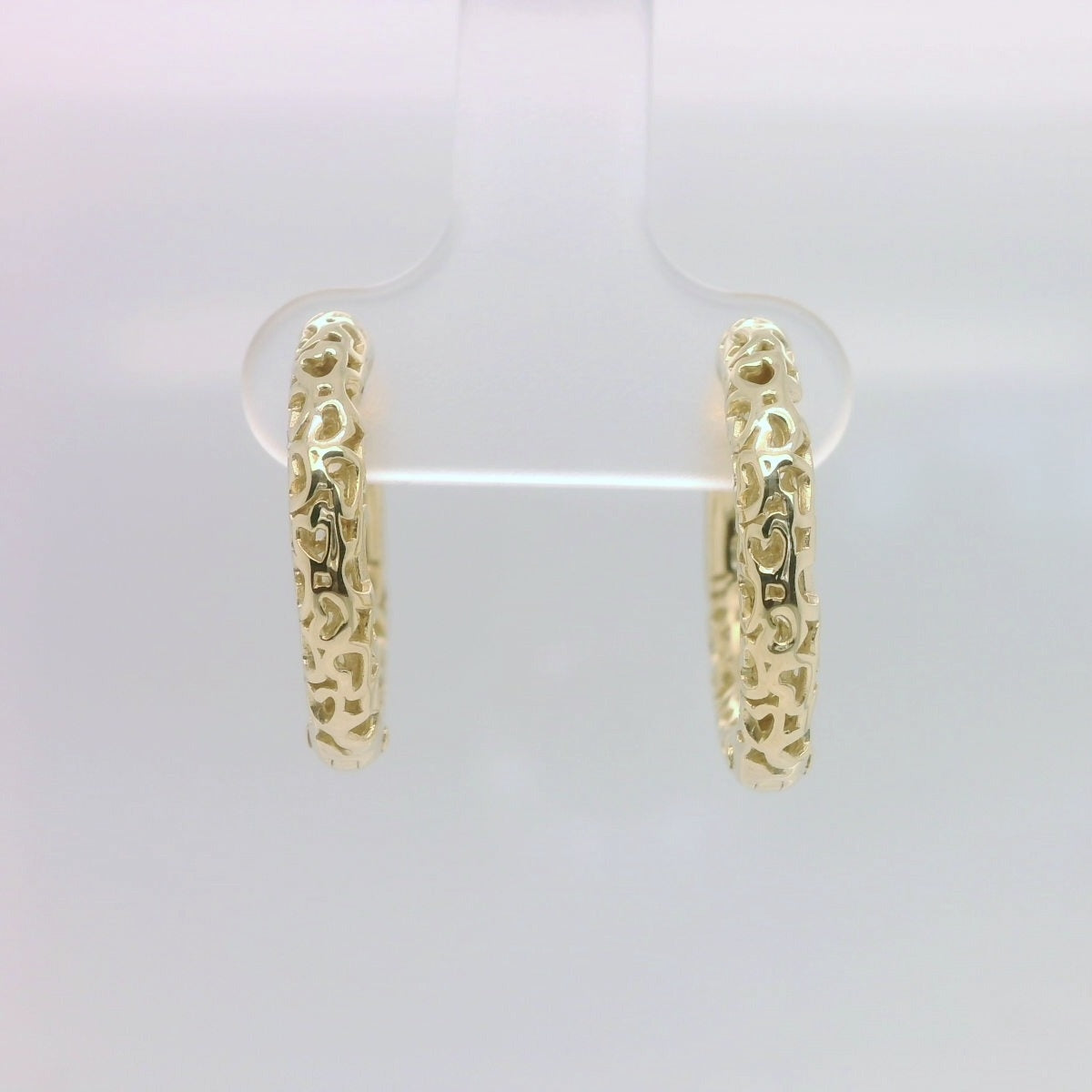 Graceful and intricate, these 9ct Yellow Gold Filigree Cut Out Hoop Earrings combine timeless craftsmanship with secure wearability.