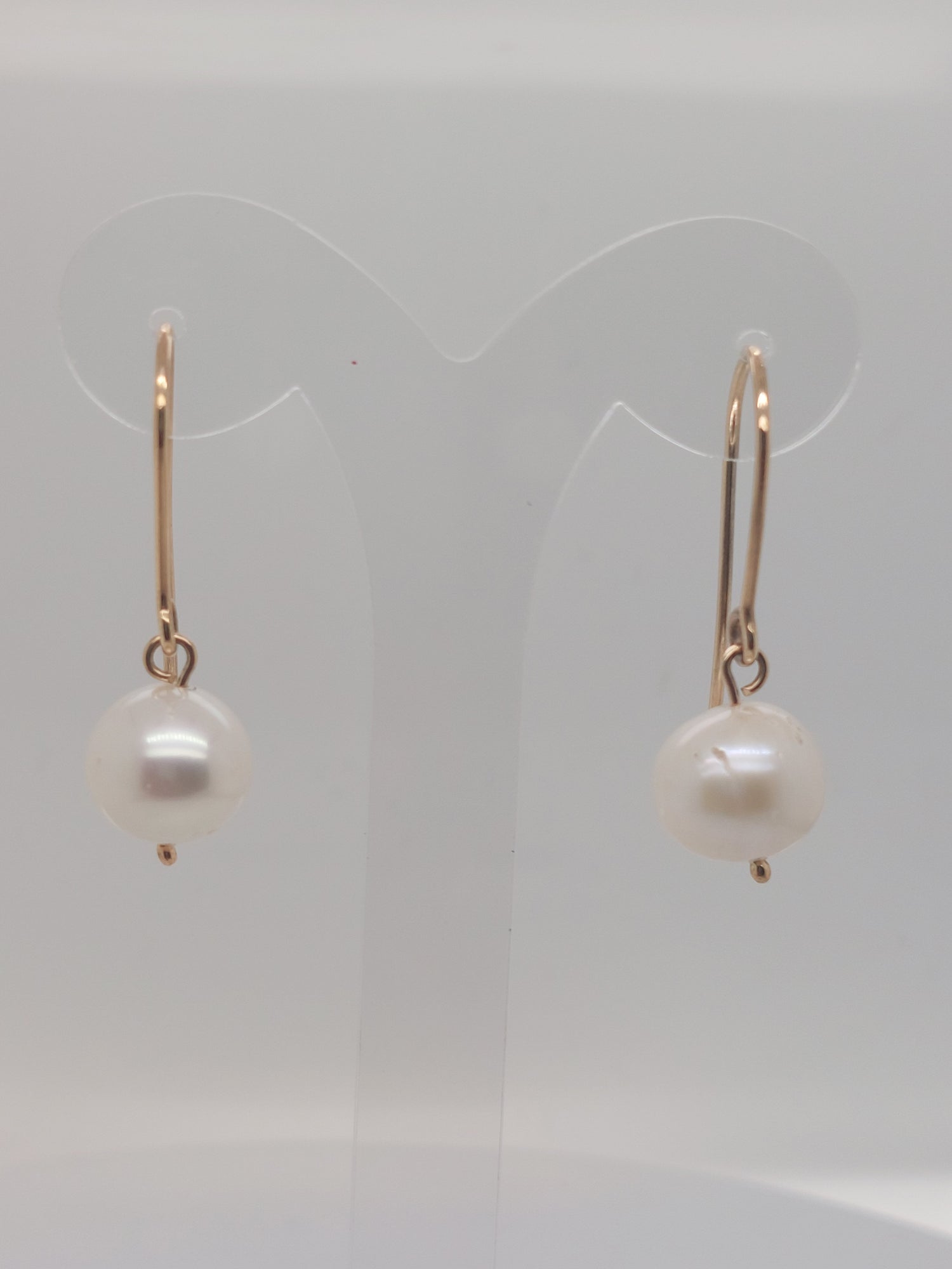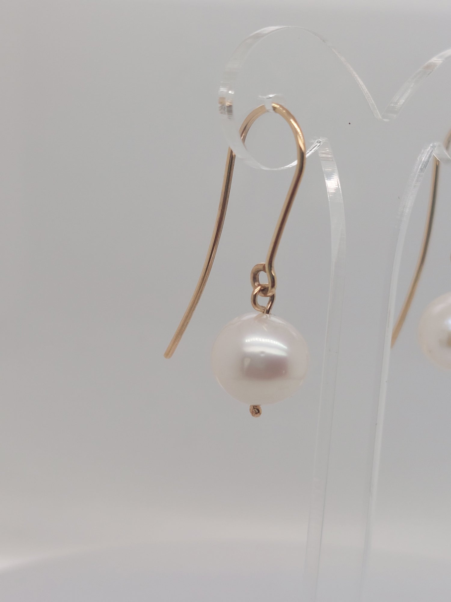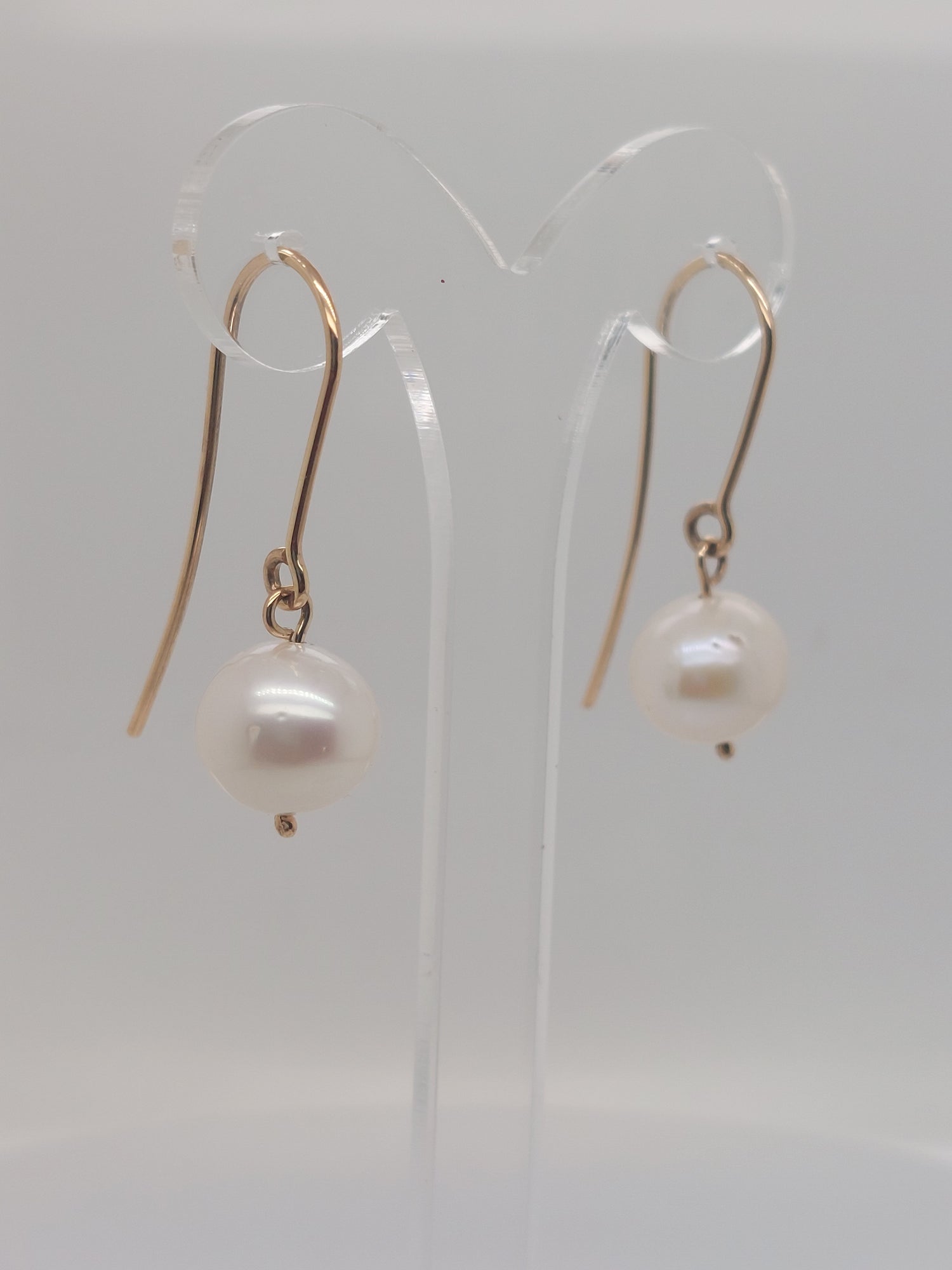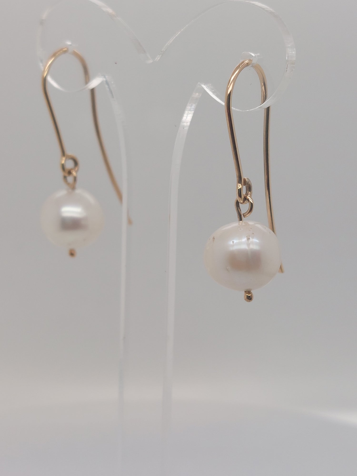 9ct yellow gold freshwater pearl drop earrings, on a hook