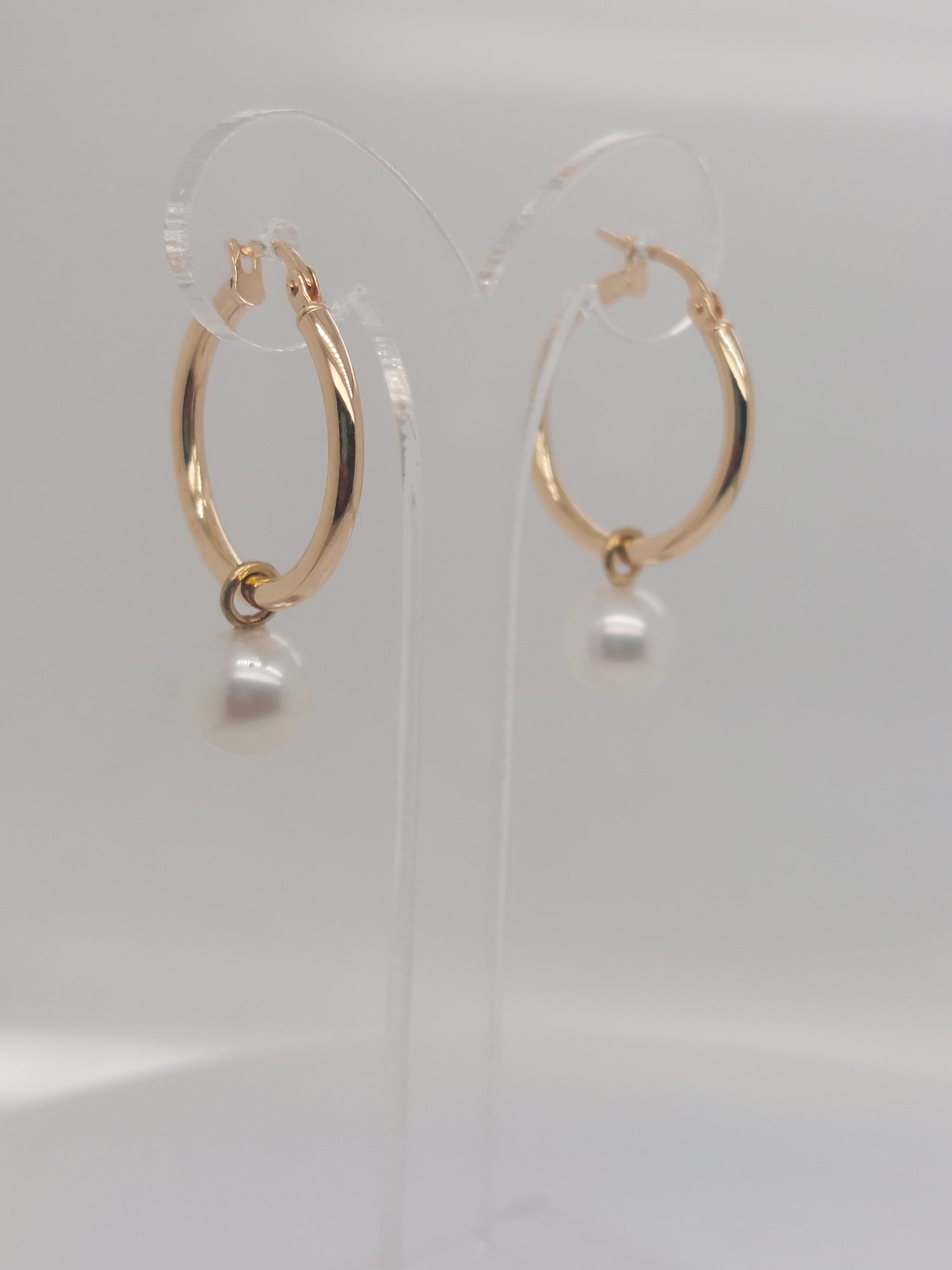 9ct yellow gold hollow hoop earring, with a white freshwater pearl drop
