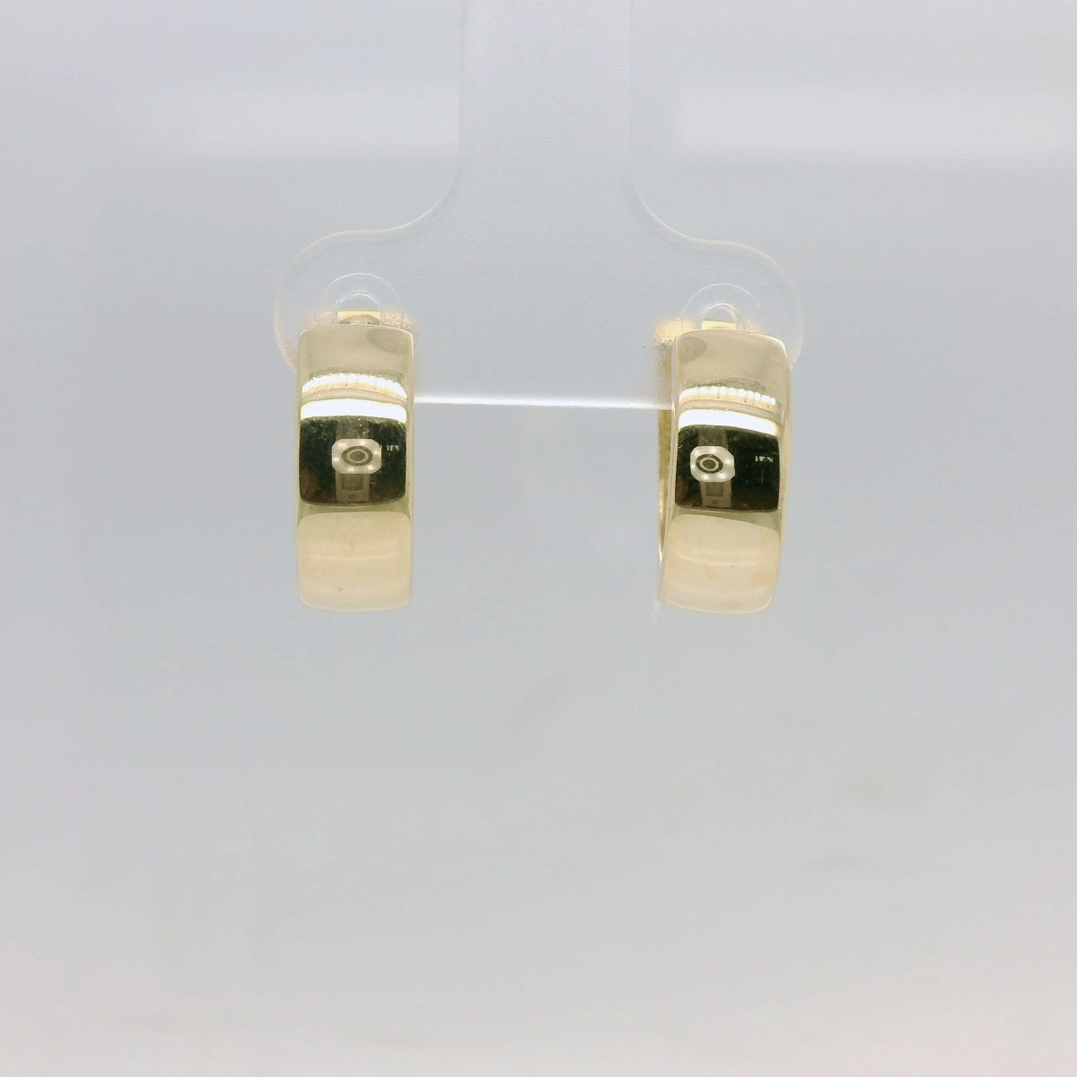 These 9ct Yellow Gold Wide Hollow Huggie Earrings offer a bold yet comfortable look, crafted in a sleek polished finish. Measuring 5.3mm wide by 11mm in diameter, they provide a classic, everyday statement with a lightweight feel that's easy to wear all day.