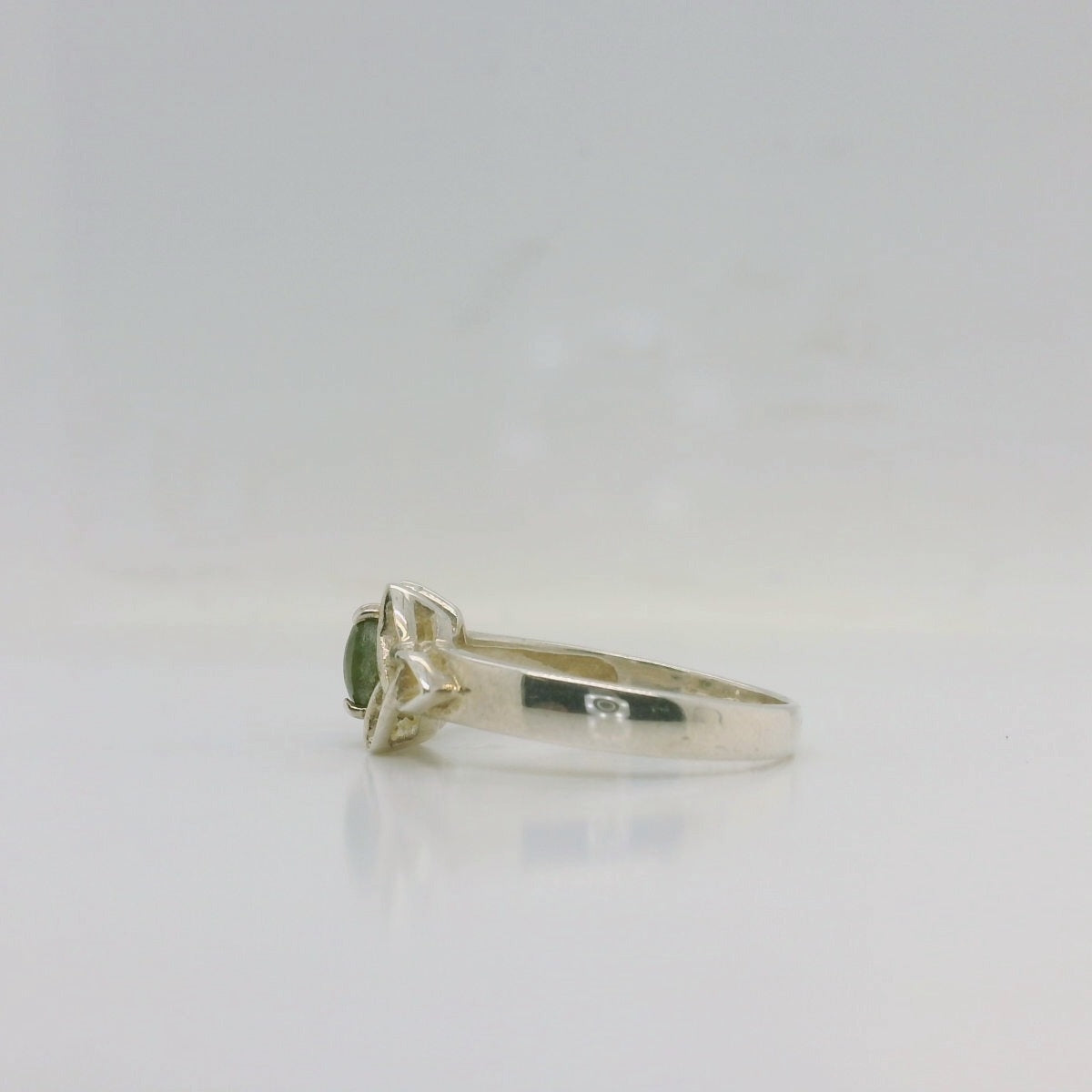 Sterling Silver Celtic Knot Ring Set with Greenstone – Size P