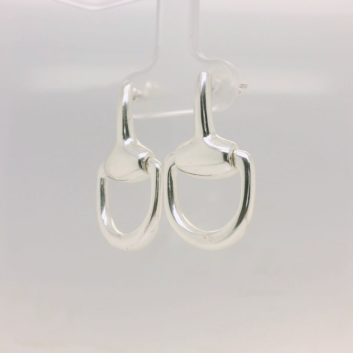 Sterling Silver Large Horse Bit Stud Drop Earrings