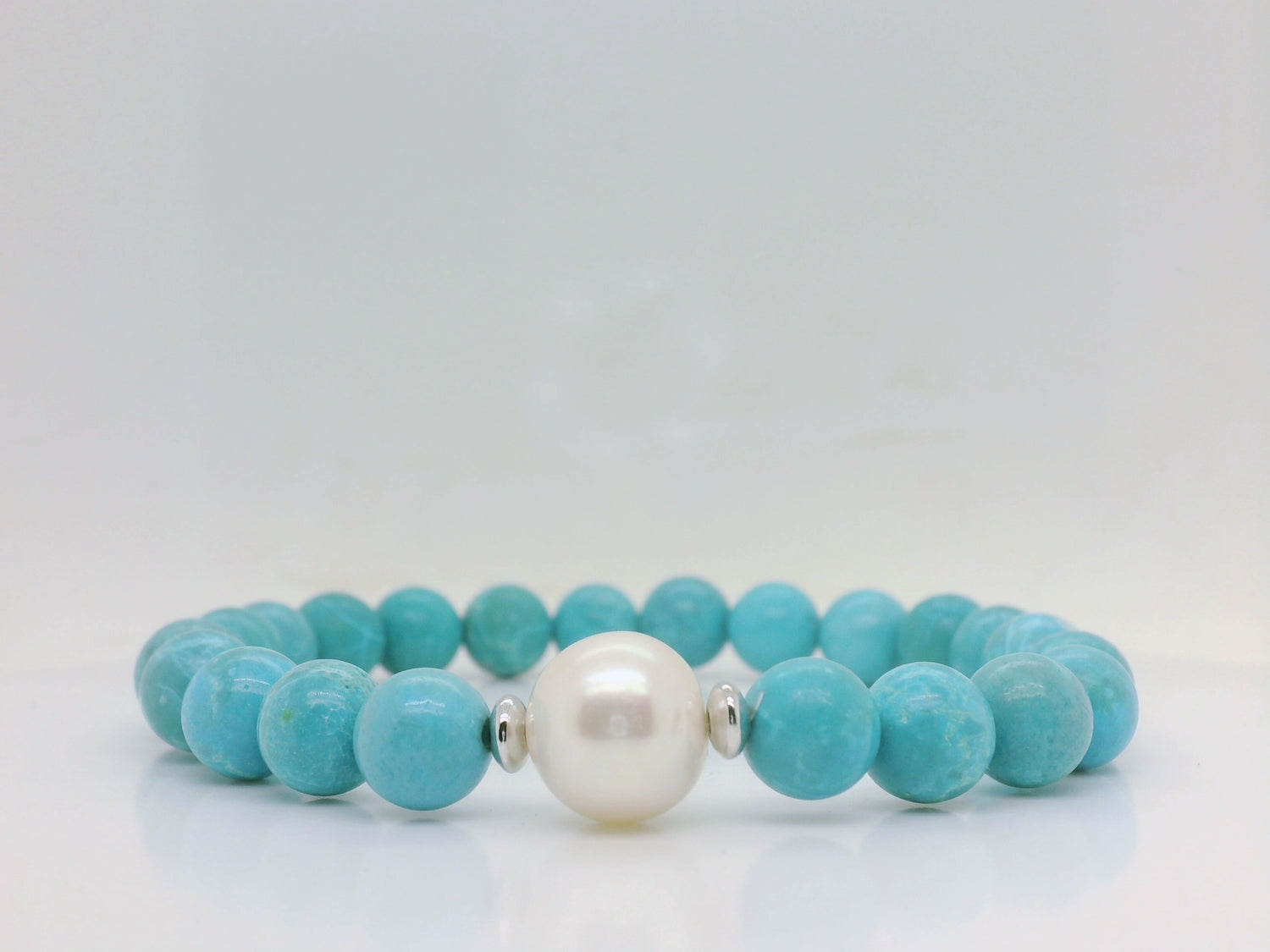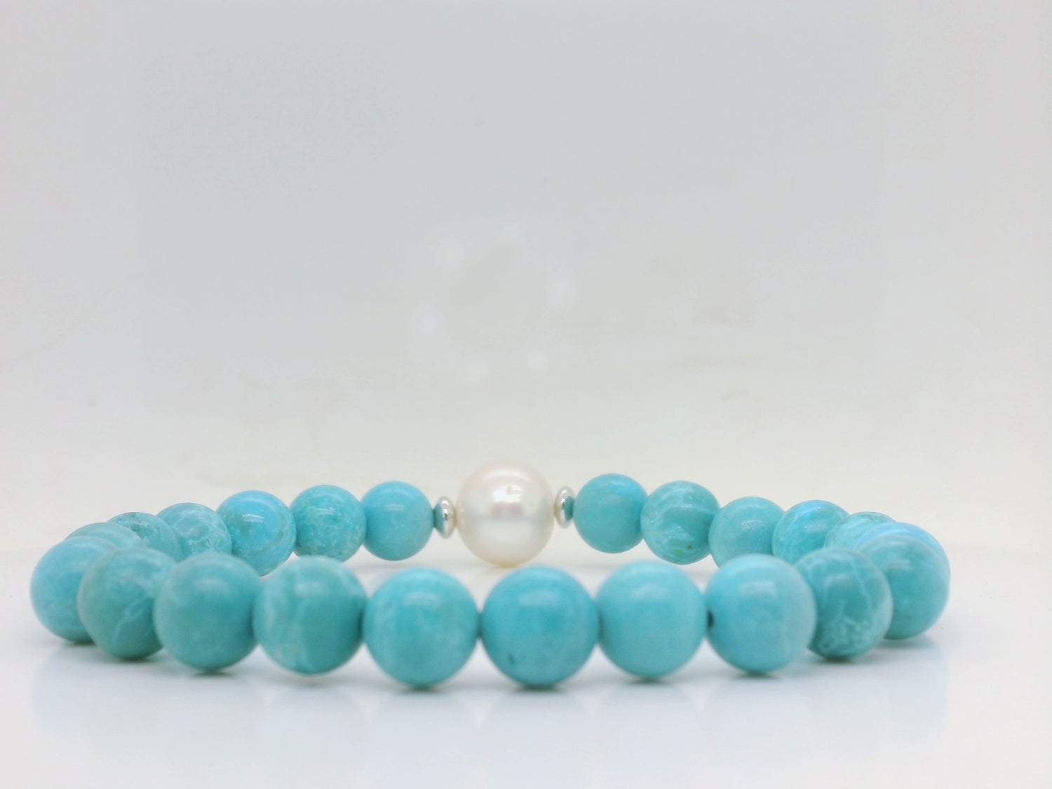 Natural Dyed Howlite bracelet on elastic, with a freshwater pearl feature