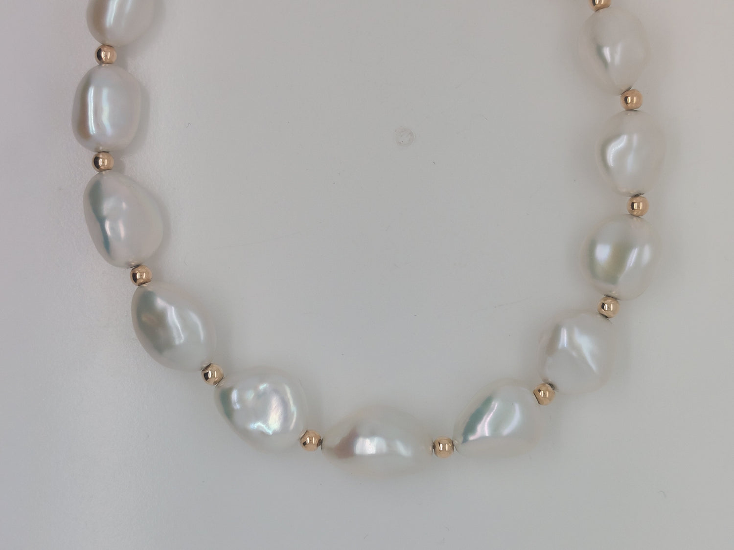 9ct Yellow Gold Ball & White Keshi Pearl Bracelet