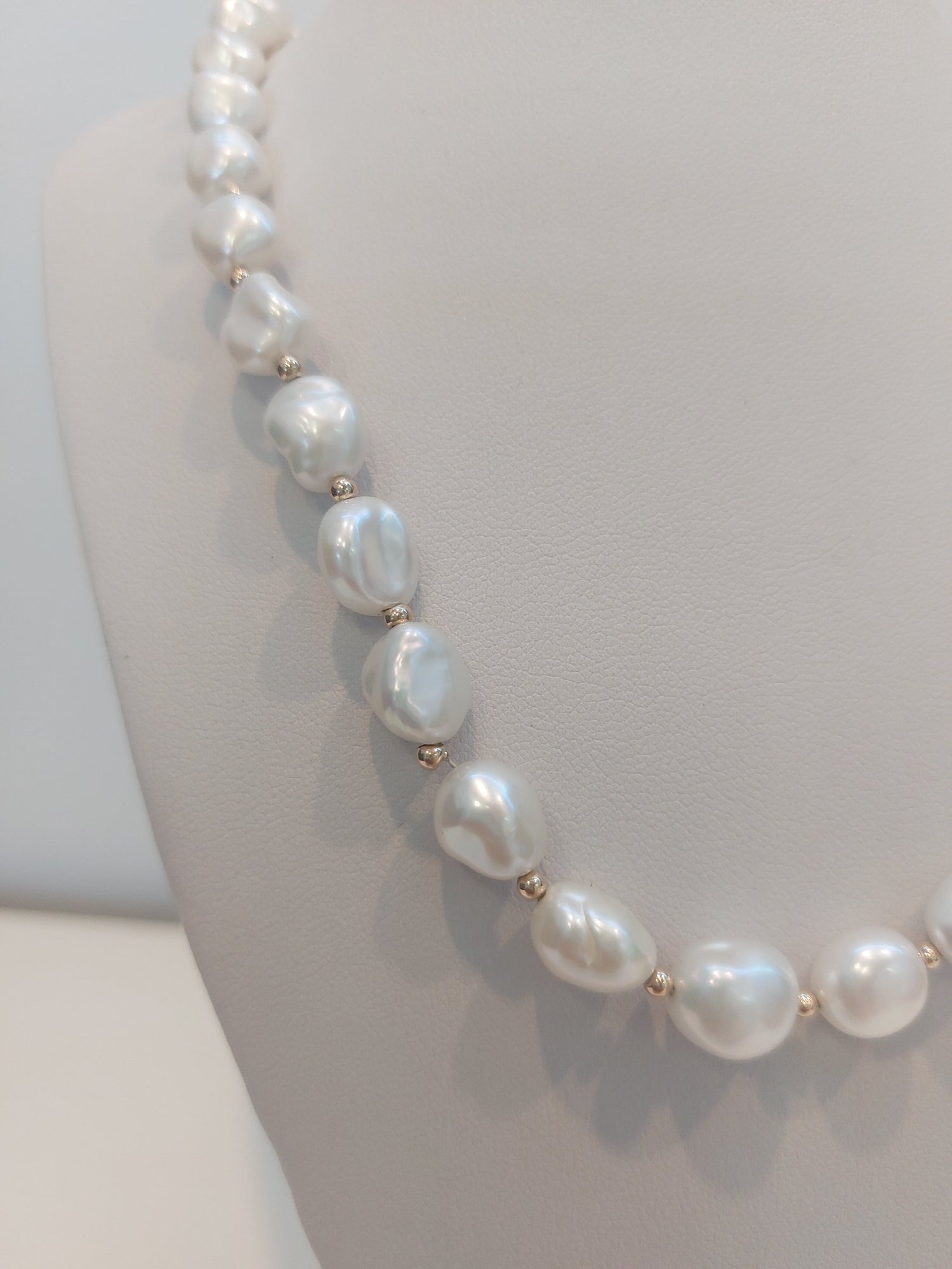 Keshi Pearl & Gold Ball Necklace