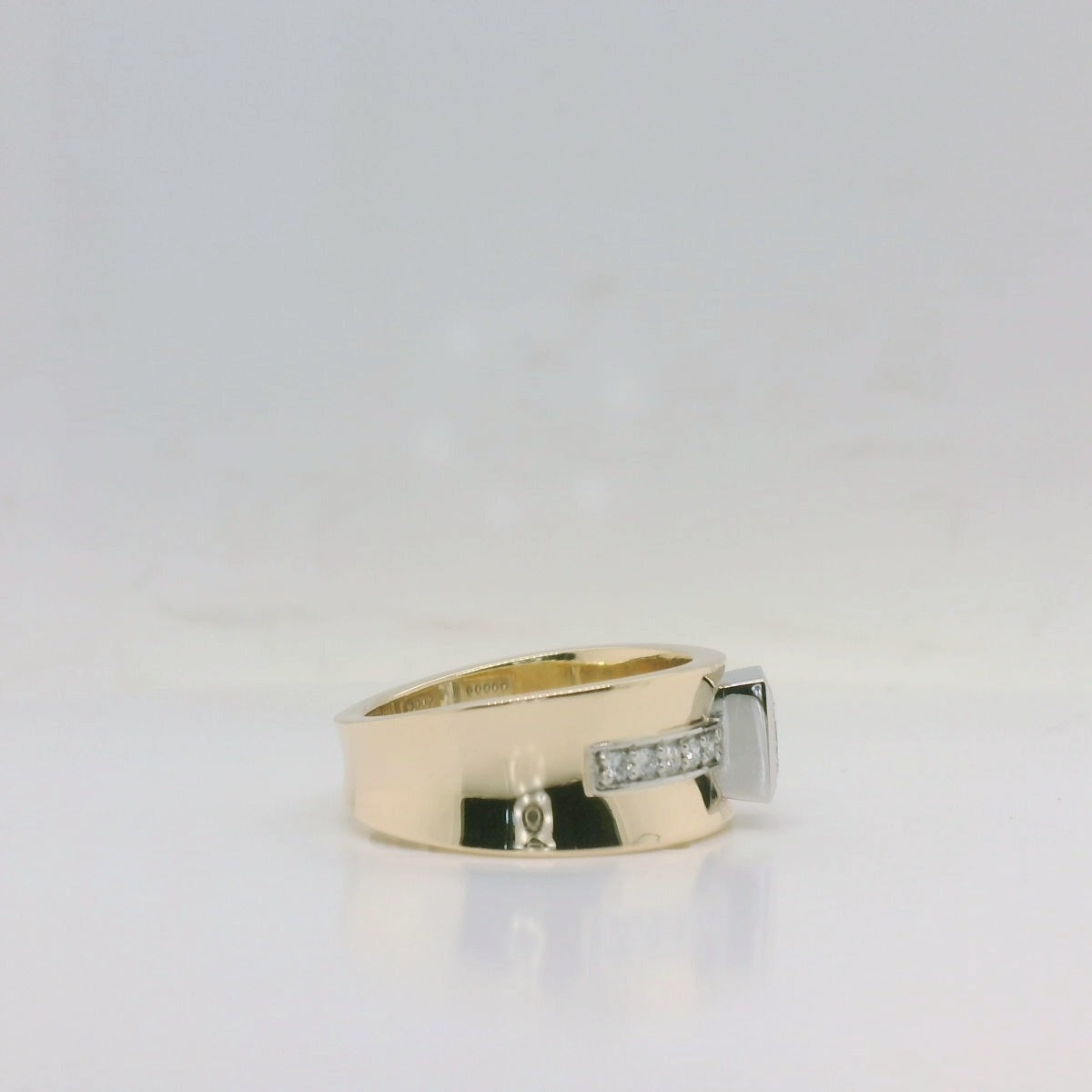 9ct Yellow Gold & Platinum Concave Ring with Lab-Grown Diamonds