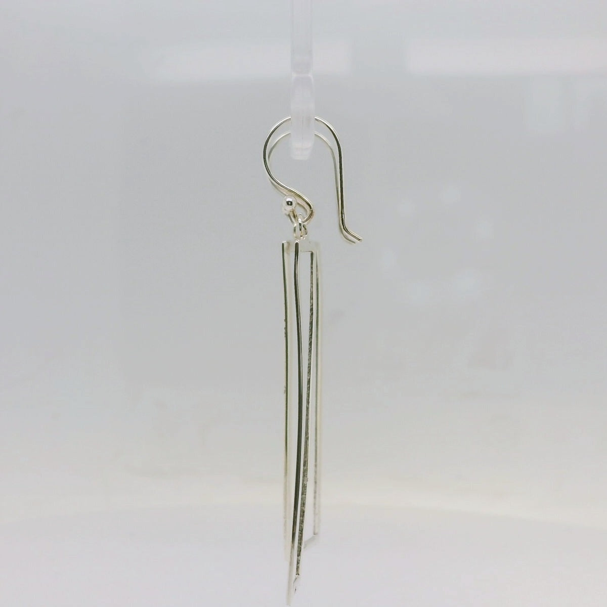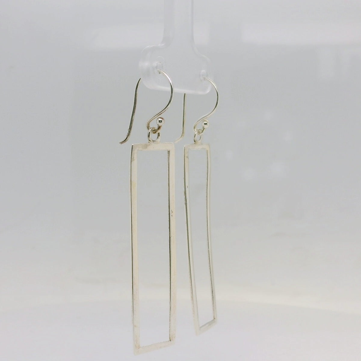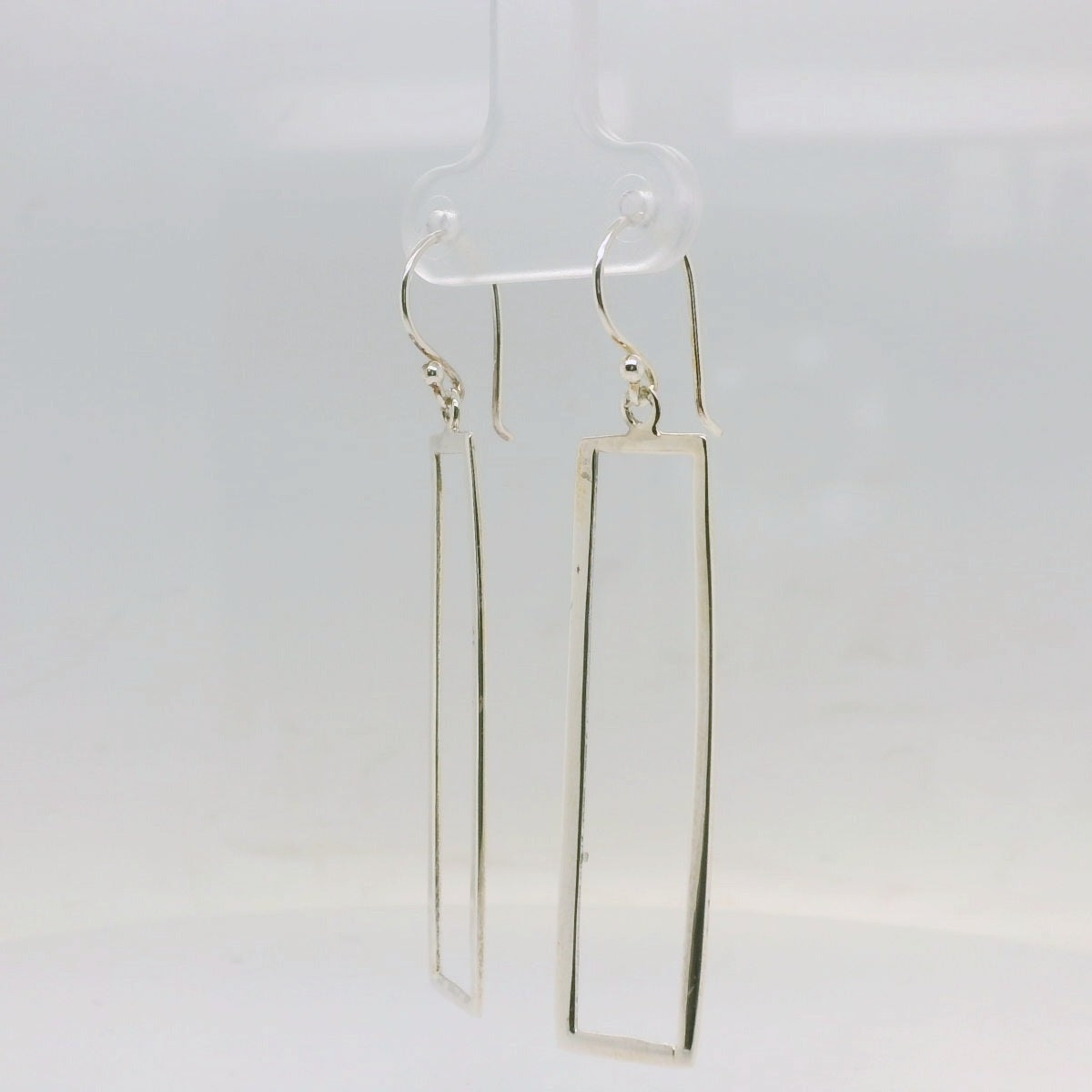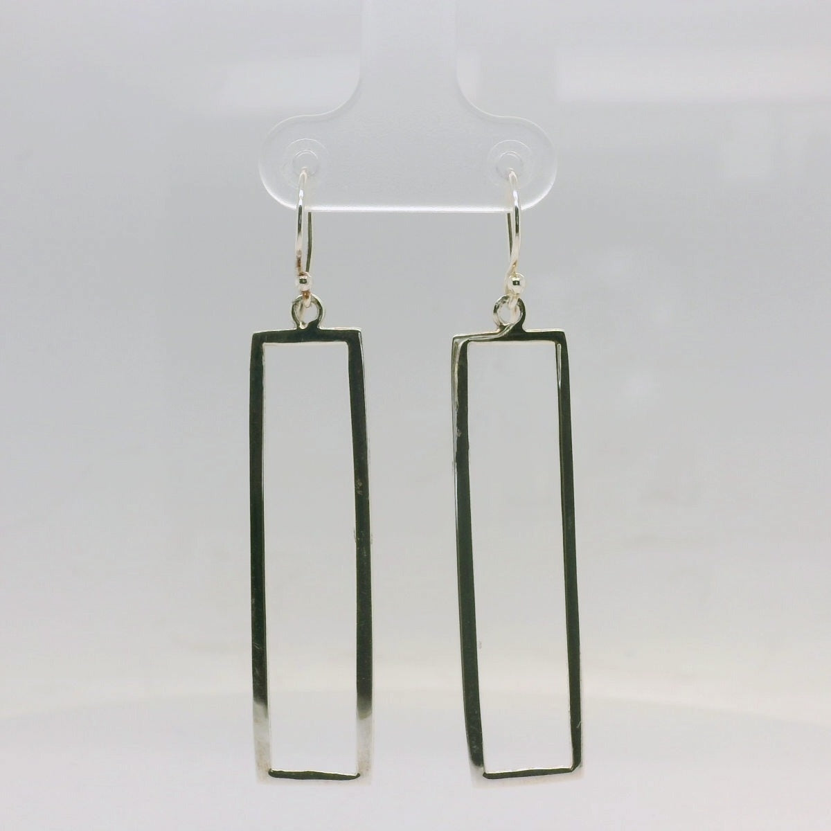Sleek and modern, these Sterling Silver Long Cut-Out Rectangle Drop Earrings offer a minimalist yet striking design. Crafted in polished sterling silver, each earring features an elongated rectangular shape with a cut-out centre, creating an elegant sense of lightness and movement. Perfect for day-to-night wear, these earrings add a contemporary edge to any outfit.