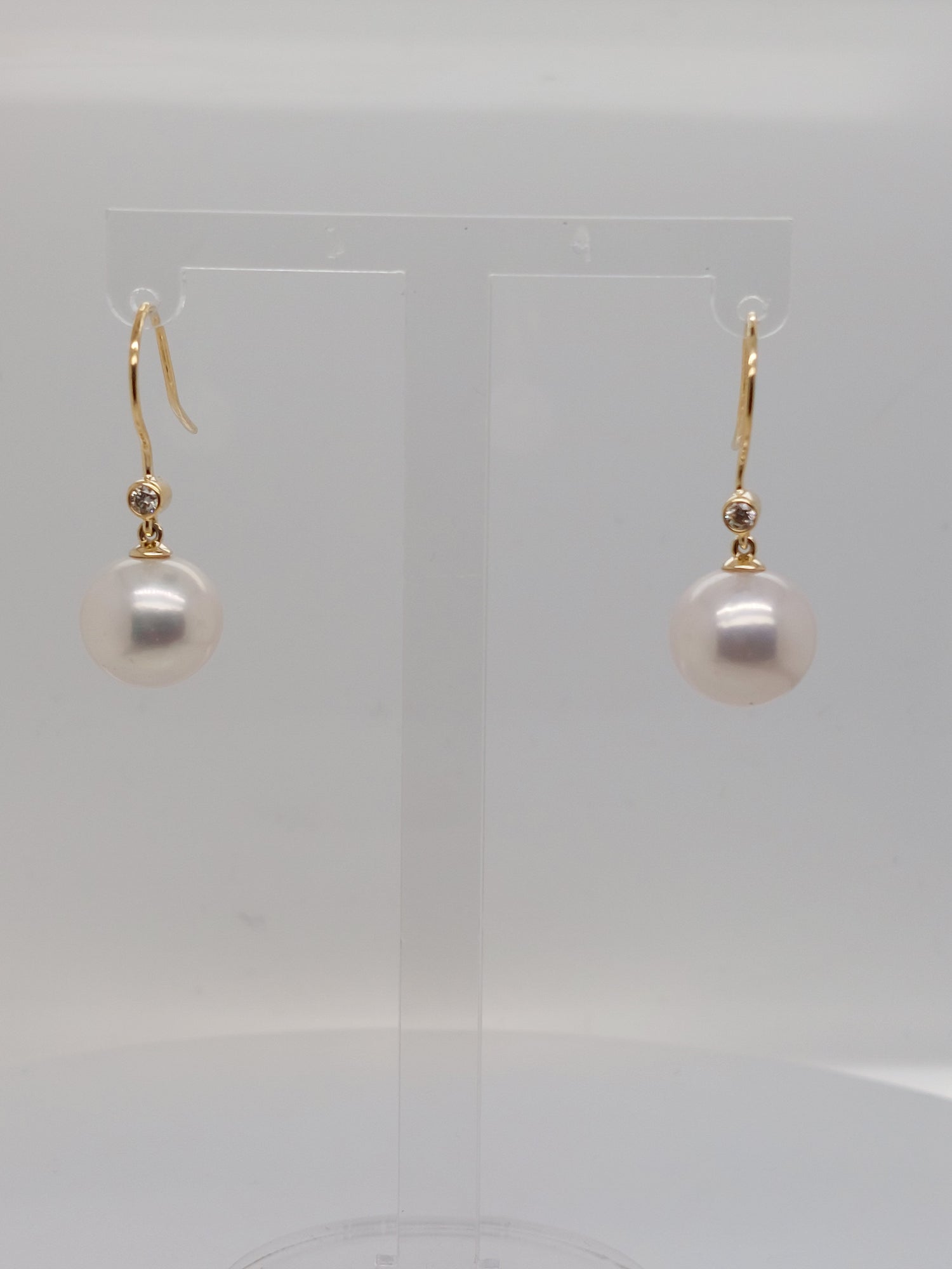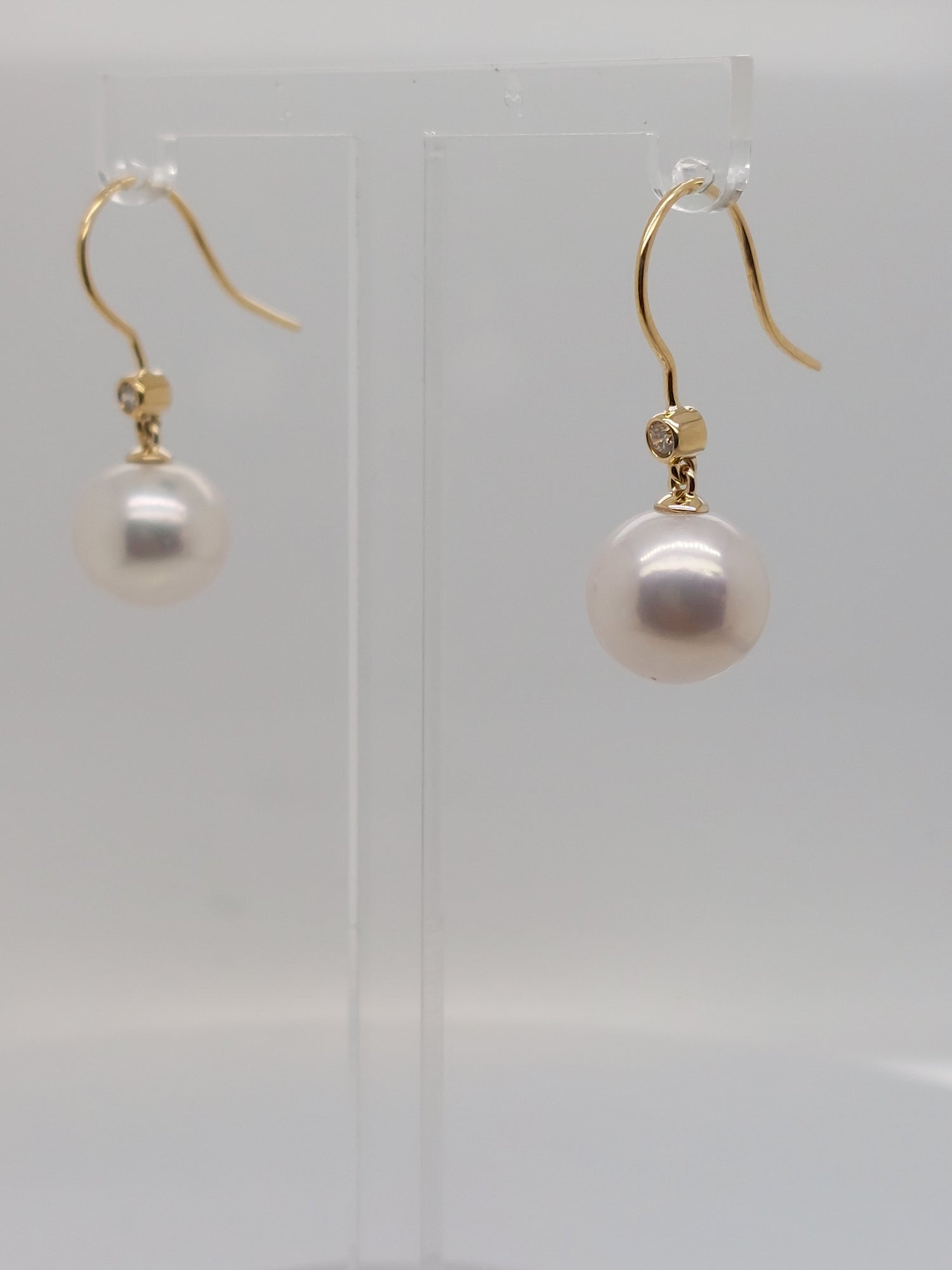 Sophisticated and timeless, these 9ct yellow gold drop earrings feature a luminous 10–11mm white Edison pearl paired with a sparkling 0.08ct white diamond for added brilliance. Measuring 28mm x 10mm, the elegant design combines classic charm with modern sophistication, perfect for elevating any outfit.