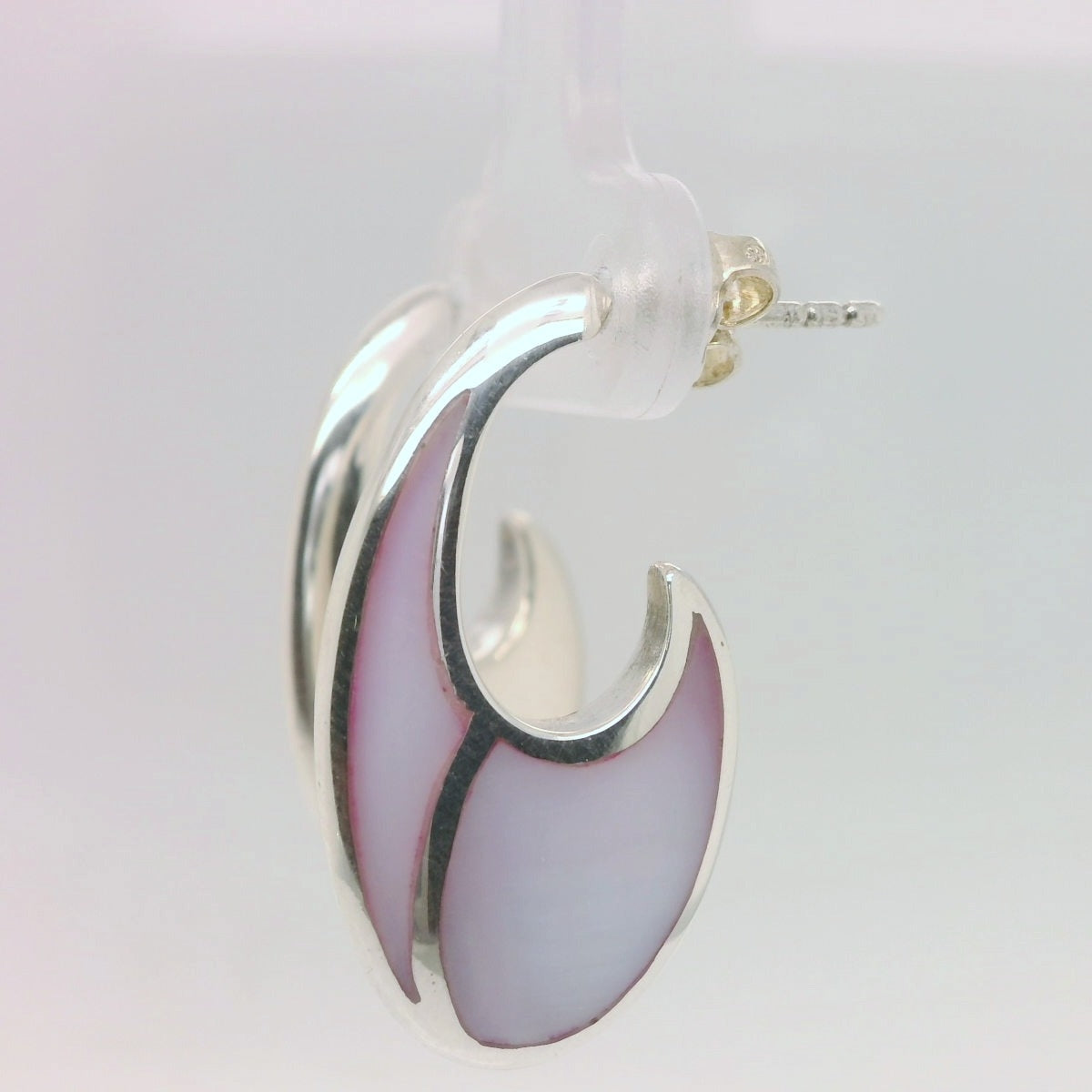 Timeless and elegant, these Sterling Silver Half Round Hoop Earrings feature smooth curves and are beautifully accented with shimmering Mother of Pearl (MOP) inlays. Their classic hoop shape combined with the soft iridescence of MOP makes them perfect for adding a subtle touch of sophistication to any outfit.