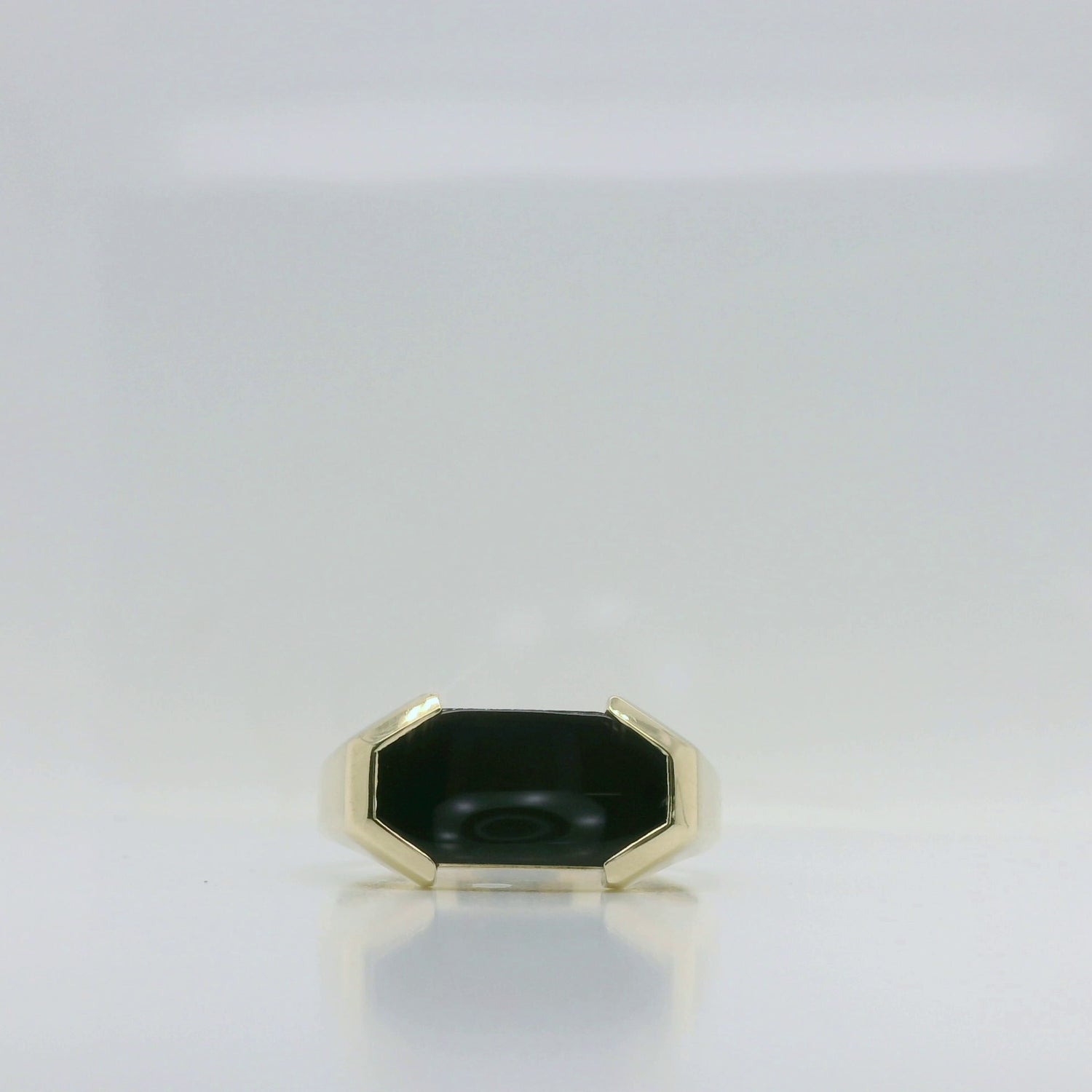 9ct Yellow Gold Gents Octagonal Black Onyx Ring – Size V