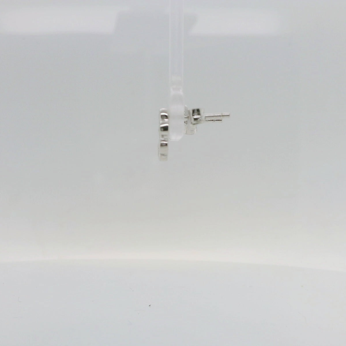 Ellani Collections - Sterling Silver open circle stud earrings, bezel set with white cubic zirconias