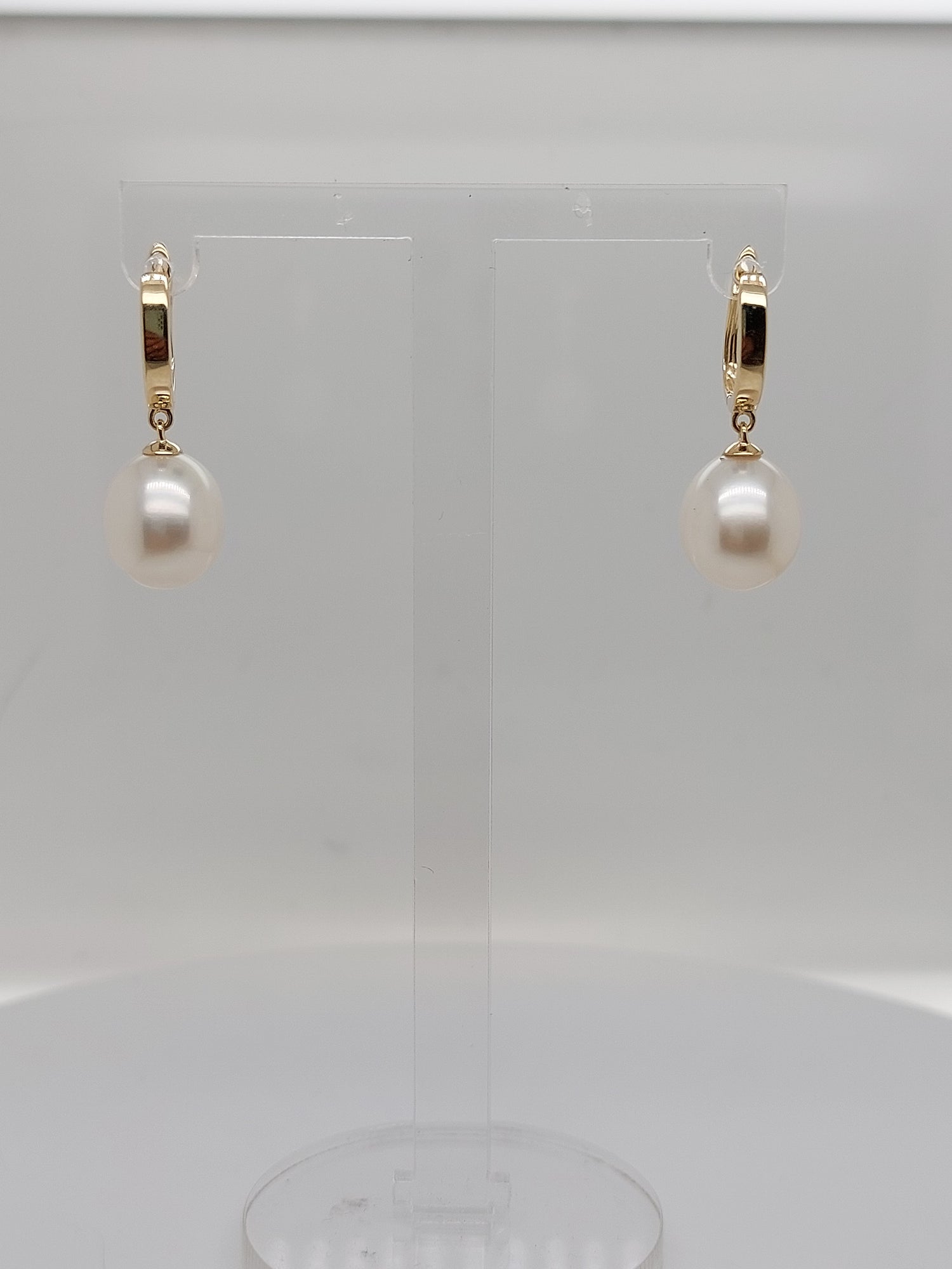 9ct Yellow Gold Huggie Earrings with Freshwater Pearl Drop