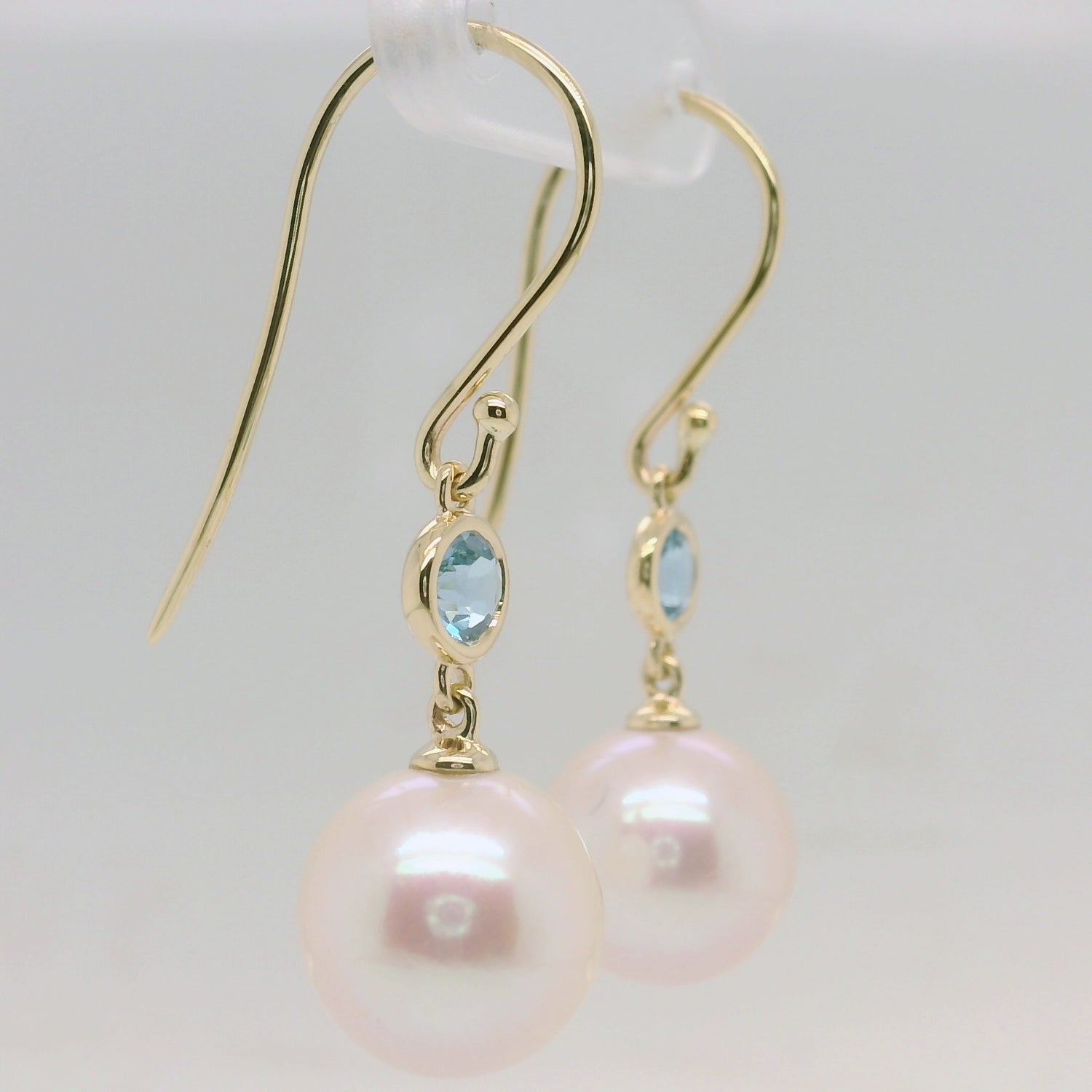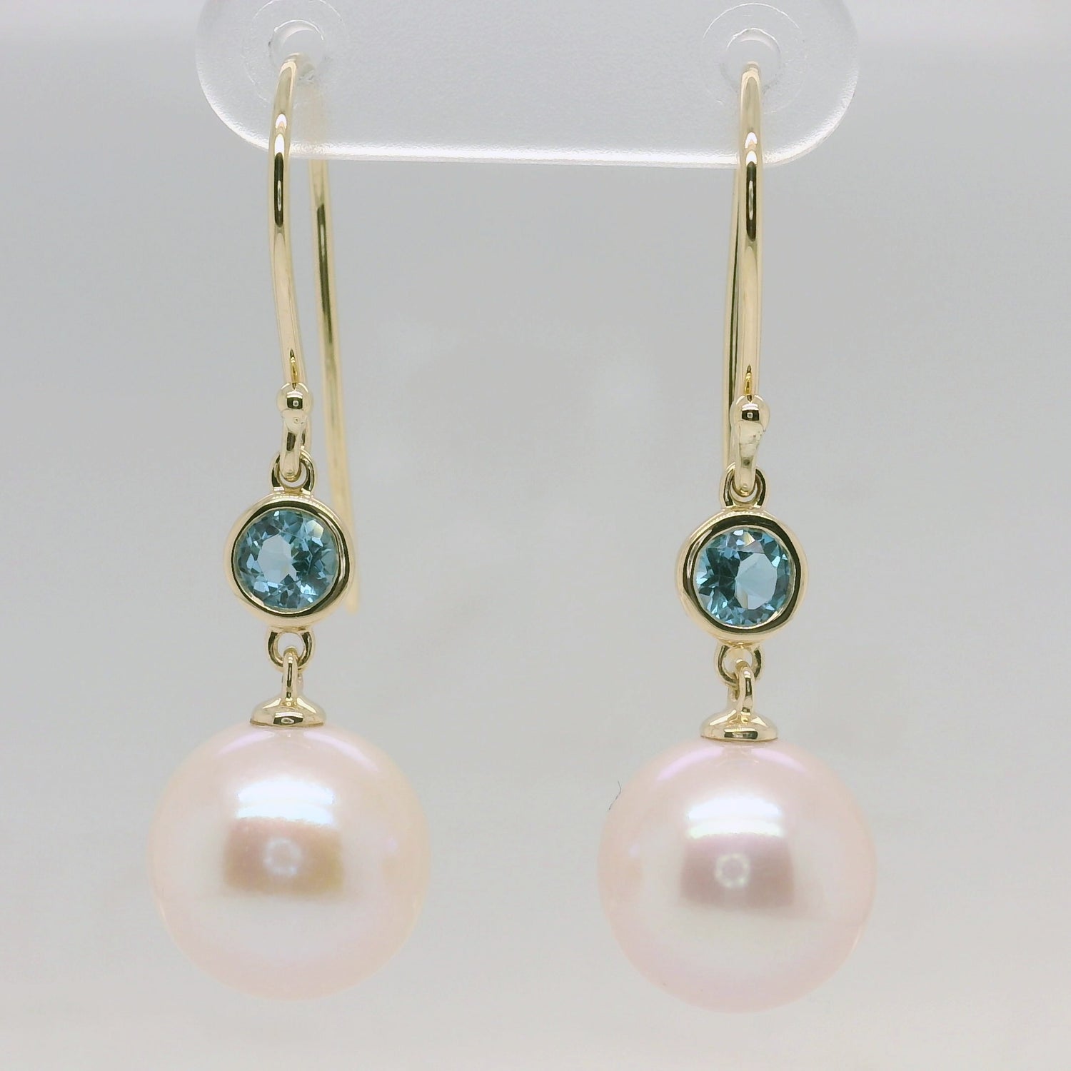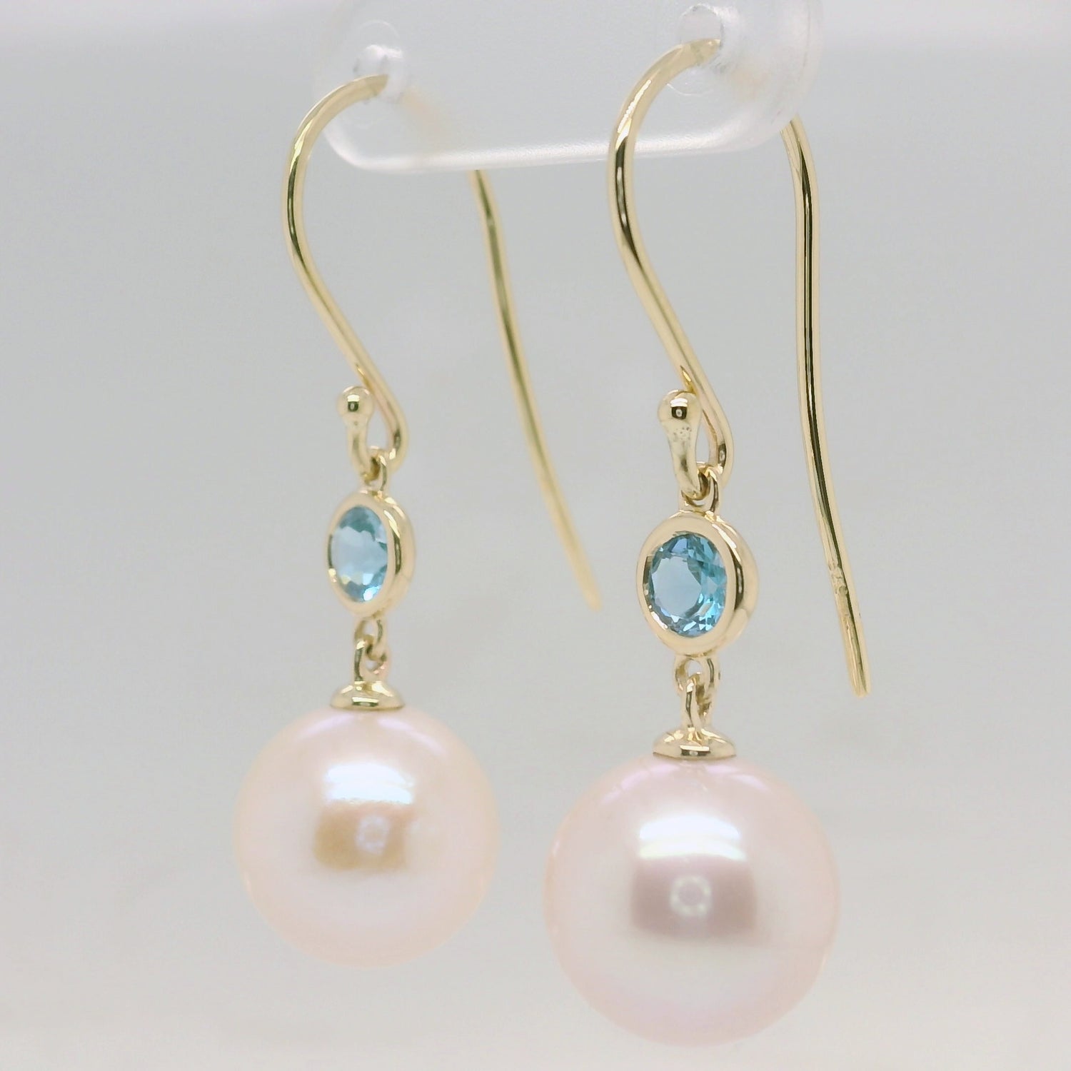 Delicate and luminous, these 9ct Yellow Gold Drop Earrings feature lustrous freshwater pearls paired with sparkling blue topaz gemstones for a graceful, light-catching design. The soft shimmer of the pearls is beautifully accented by the cool brilliance of topaz, creating a look that’s both classic and refreshingly modern. A perfect choice for bridal, special occasions, or elegant everyday wear.