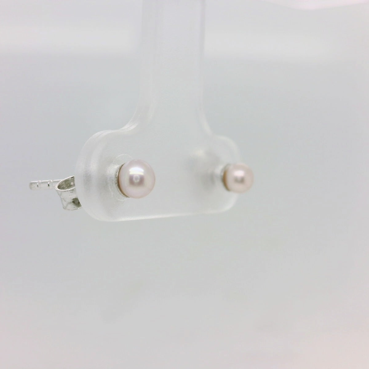 These sterling silver stud earrings feature small freshwater pearls measuring 3–3.5mm, showcasing a gentle pink hue that adds a subtle touch of elegance. Perfect for everyday wear or layering with other studs for a chic look.