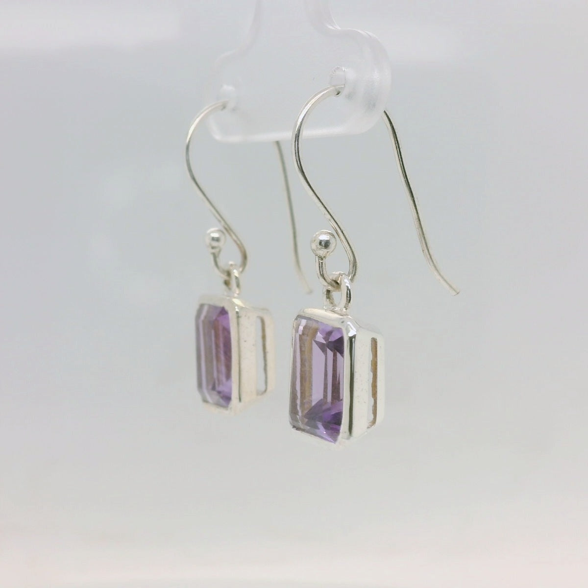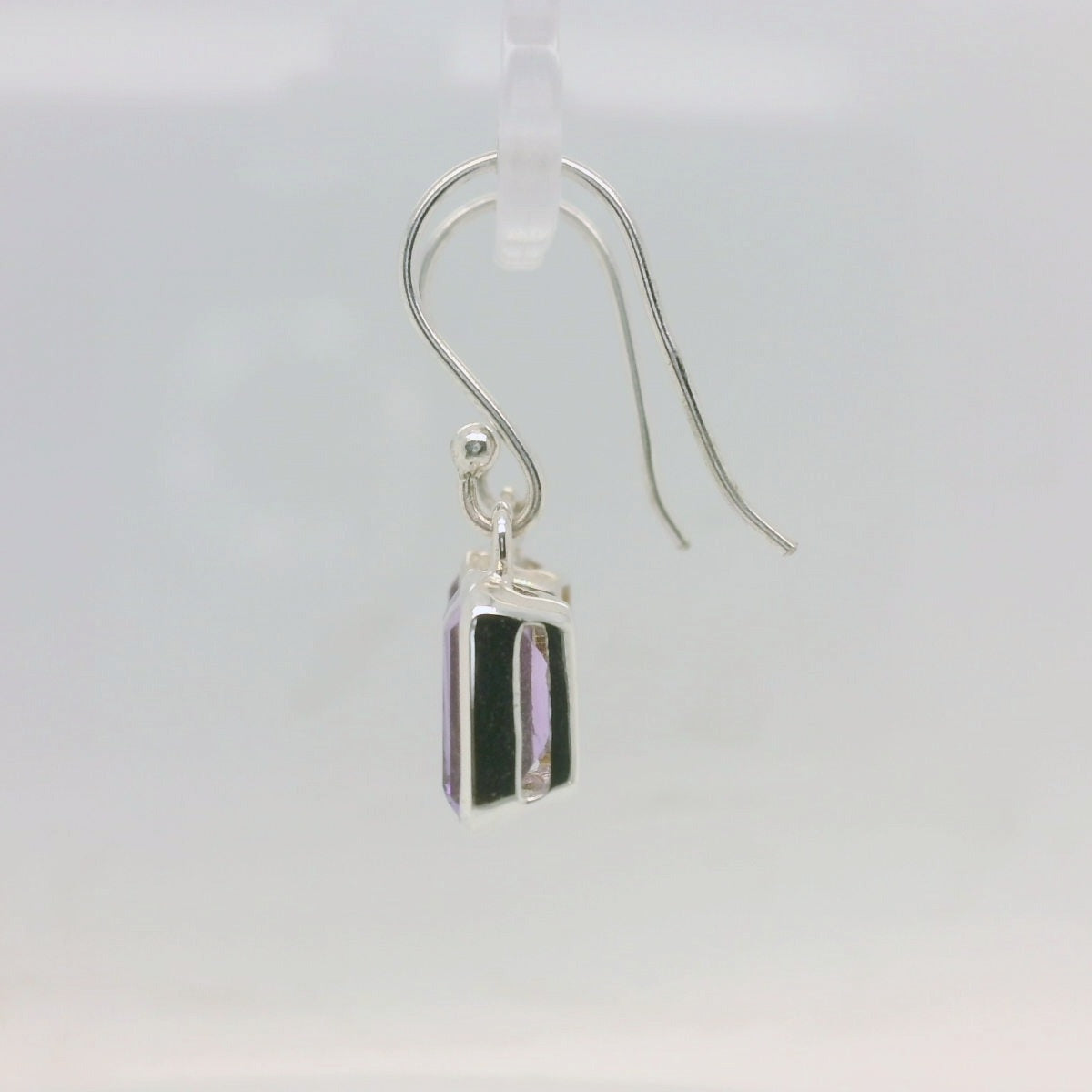 Chic and vibrant, these Sterling Silver Rectangle Amethyst Drop Earrings feature rich purple amethyst stones cut in a sleek rectangular shape. Measuring 26mm by 8mm, their elegant drop style adds a pop of colour and sophistication to any ensemble.