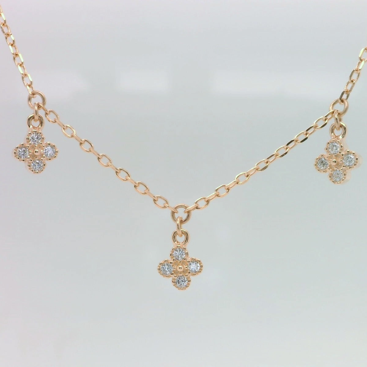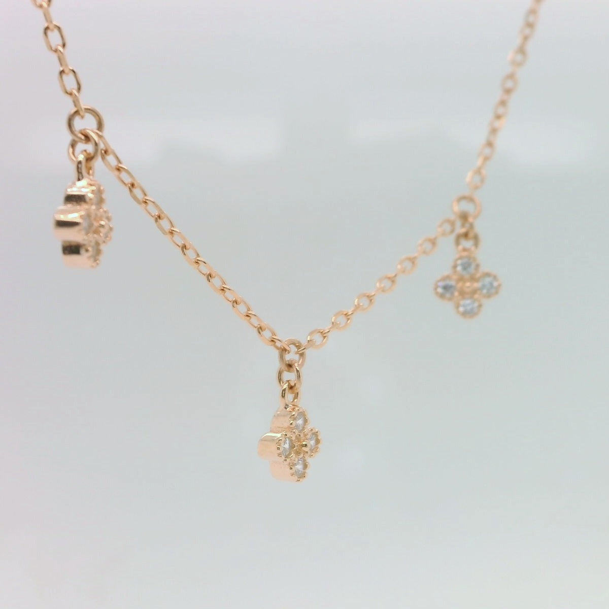 Ellani Collection - Sterling Silver rose gold plated spaced cluster crown set necklace, set with white cubic zirconias. On a sterling silver rose gold plated cable chain with a 5cm extension chain