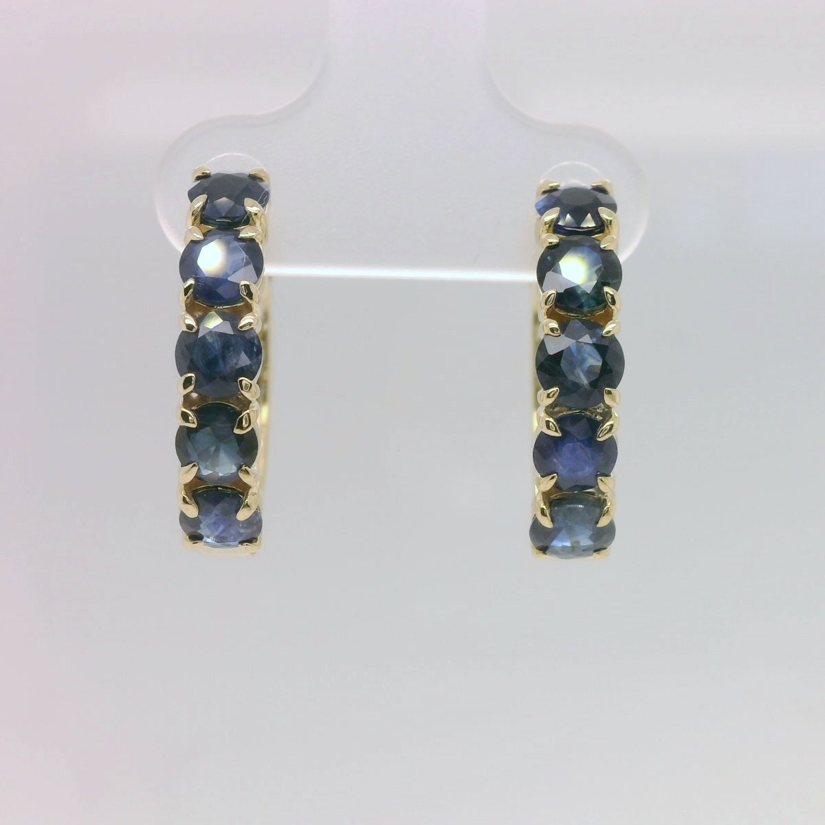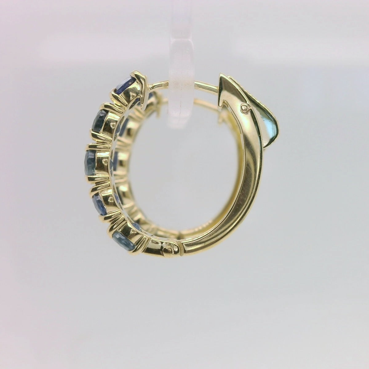 Crafted in warm 9ct yellow gold, these elegant huggies are adorned with vibrant sapphires that add a pop of rich color and sparkle. The safety lever fastening ensures a comfortable, secure fit — perfect for everyday wear or special occasions. Sleek, stylish, and built to stay in place, these earrings combine beauty and practicality effortlessly.