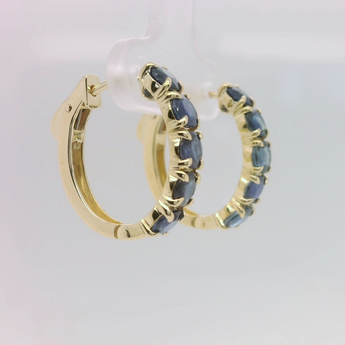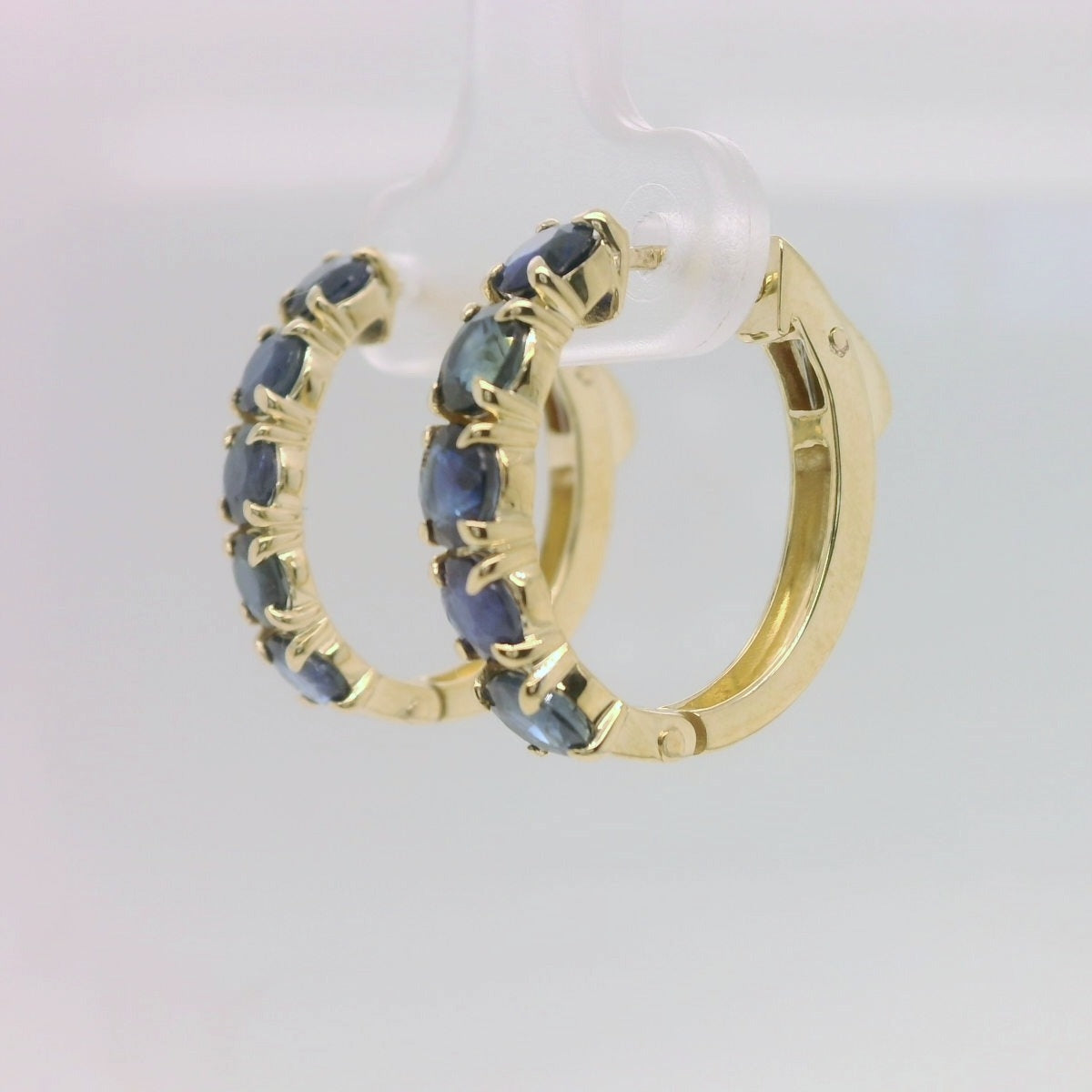 Secure your style with these stunning 9ct Yellow Gold Sapphire Huggie Earrings, complete with a safety lever closure for peace of mind.