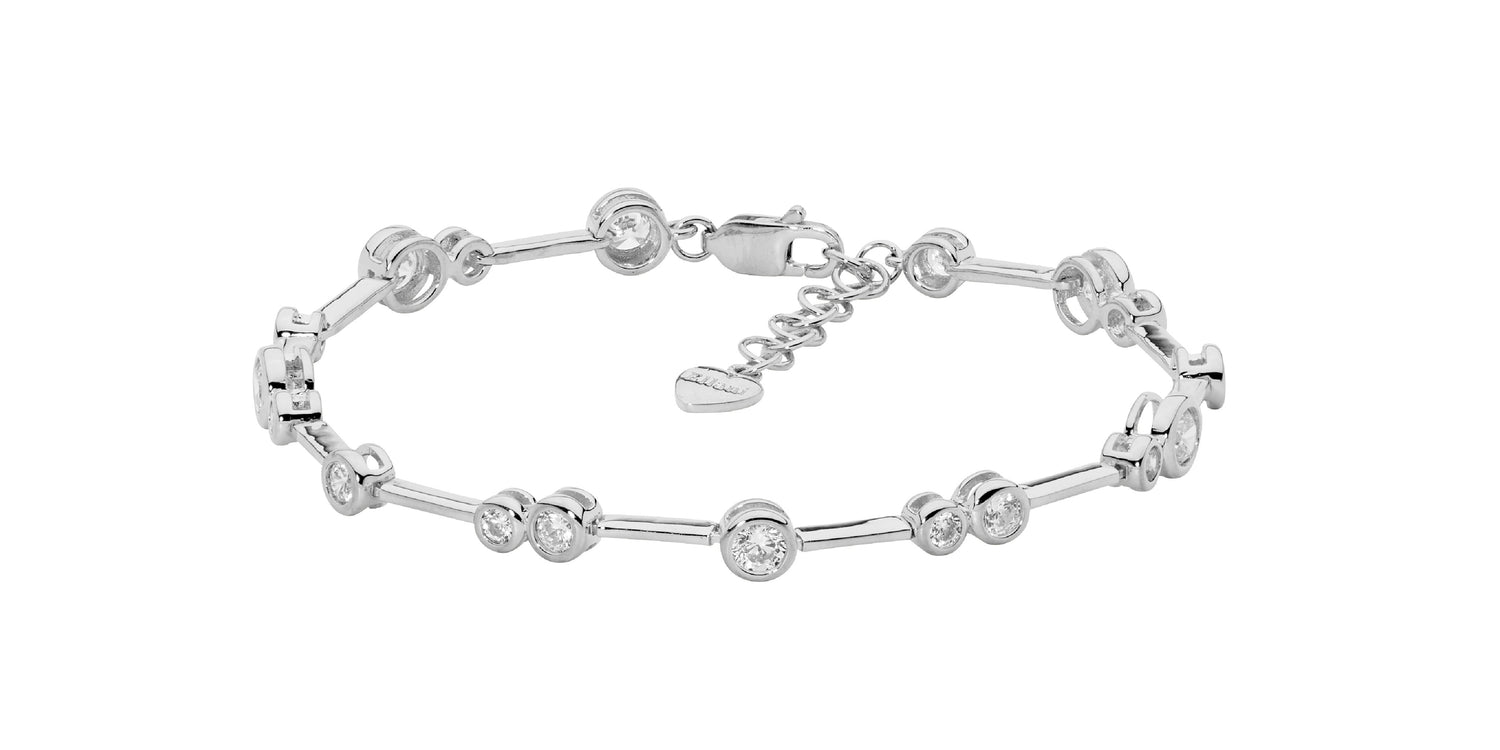 Ellani Collections - Sterling Silver bezel set cubic zirconia cluster bracelet, with an extension chain