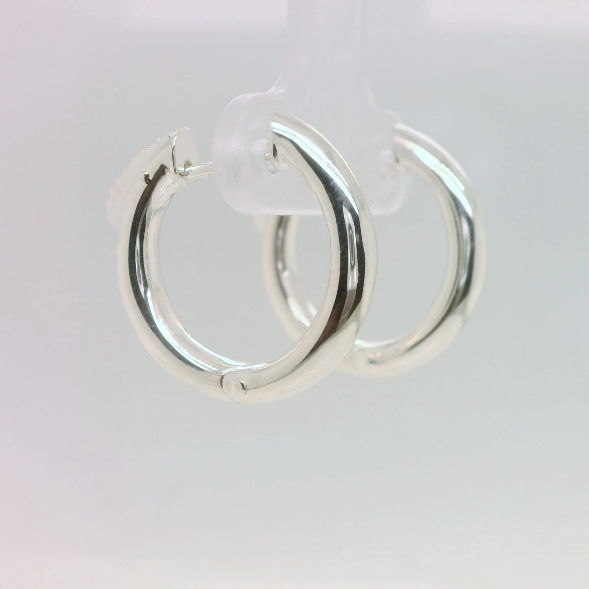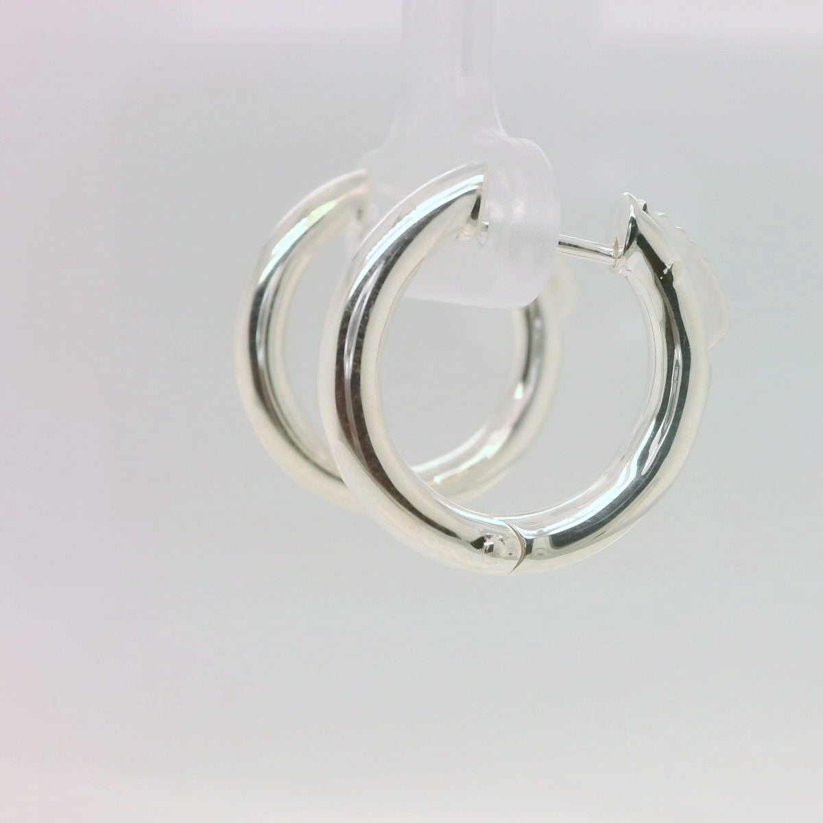 Classic and comfortable, these Sterling Silver Huggie Hoops feature a sleek, polished finish and a secure safety latch closure for easy wear and peace of mind. Their close-fitting design makes them perfect for everyday elegance or layering with other earrings.