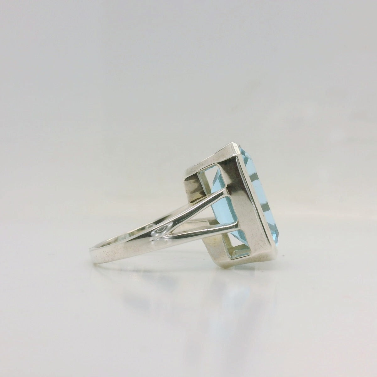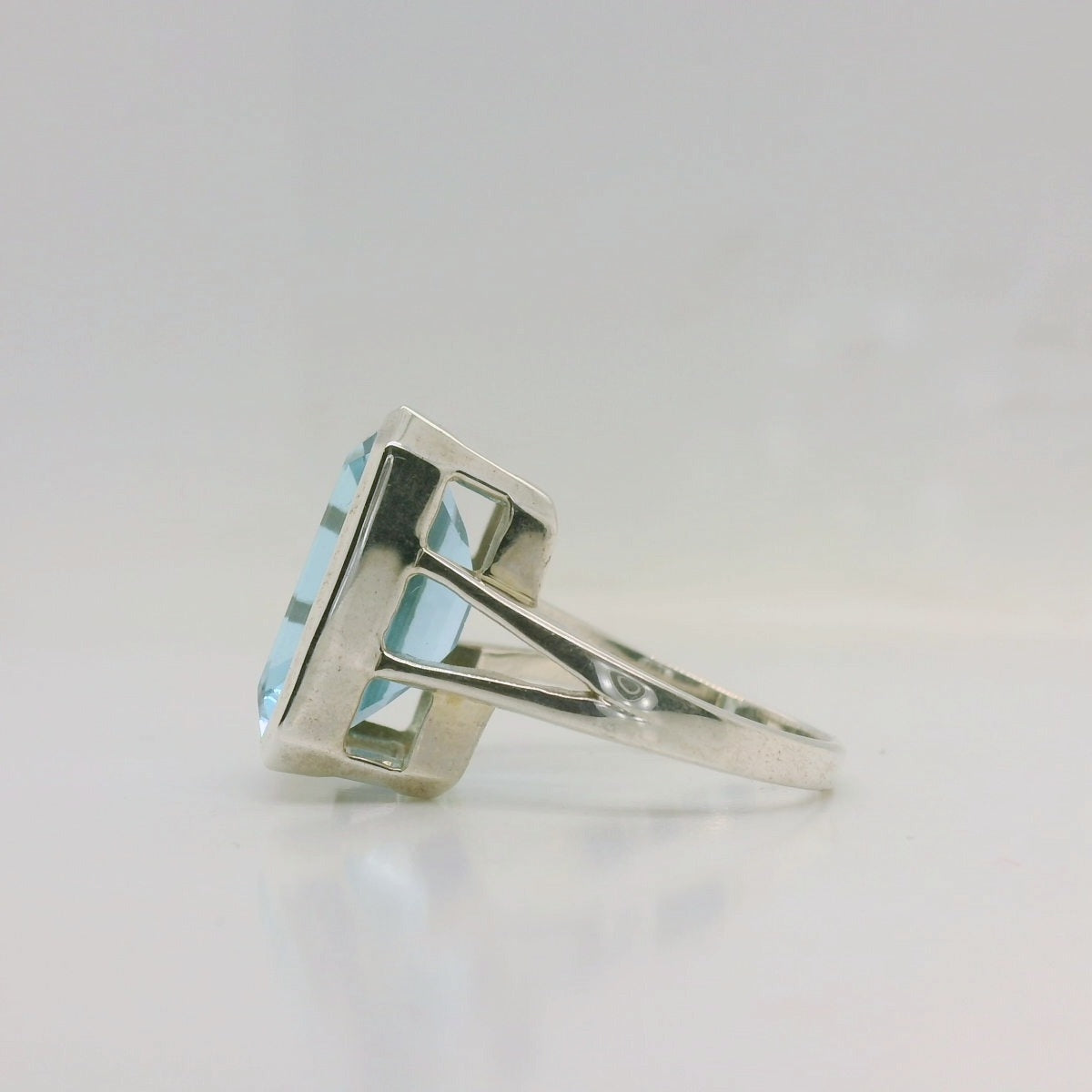 Sterling Silver Emerald Cut Blue Topaz Split Shank Ring – Size M ½
