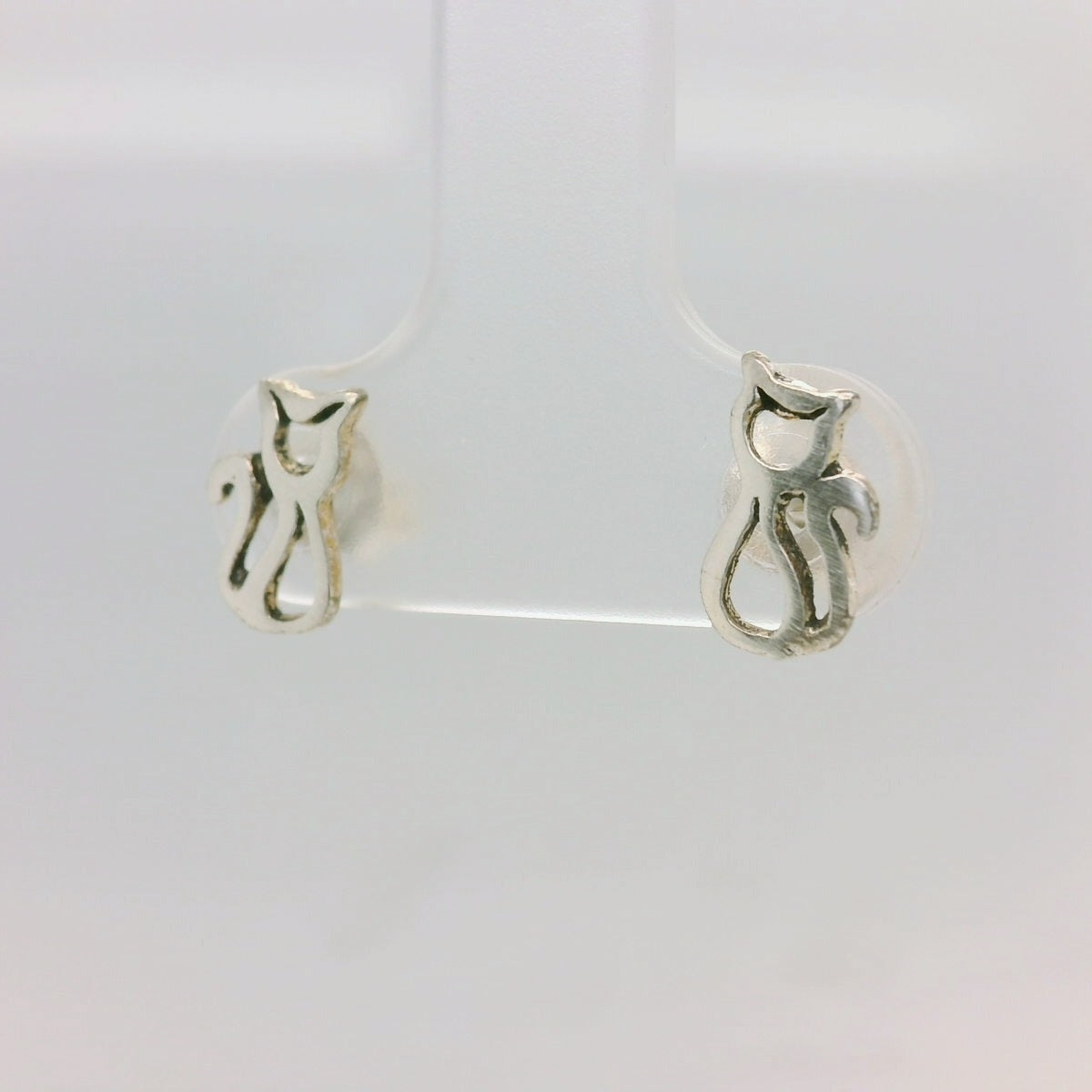 These adorable sterling silver stud earrings feature a sitting cat design with a delicate cut-out detail—ideal for young animal lovers. Lightweight and easy to wear, they add a touch of feline charm to any little one’s day.