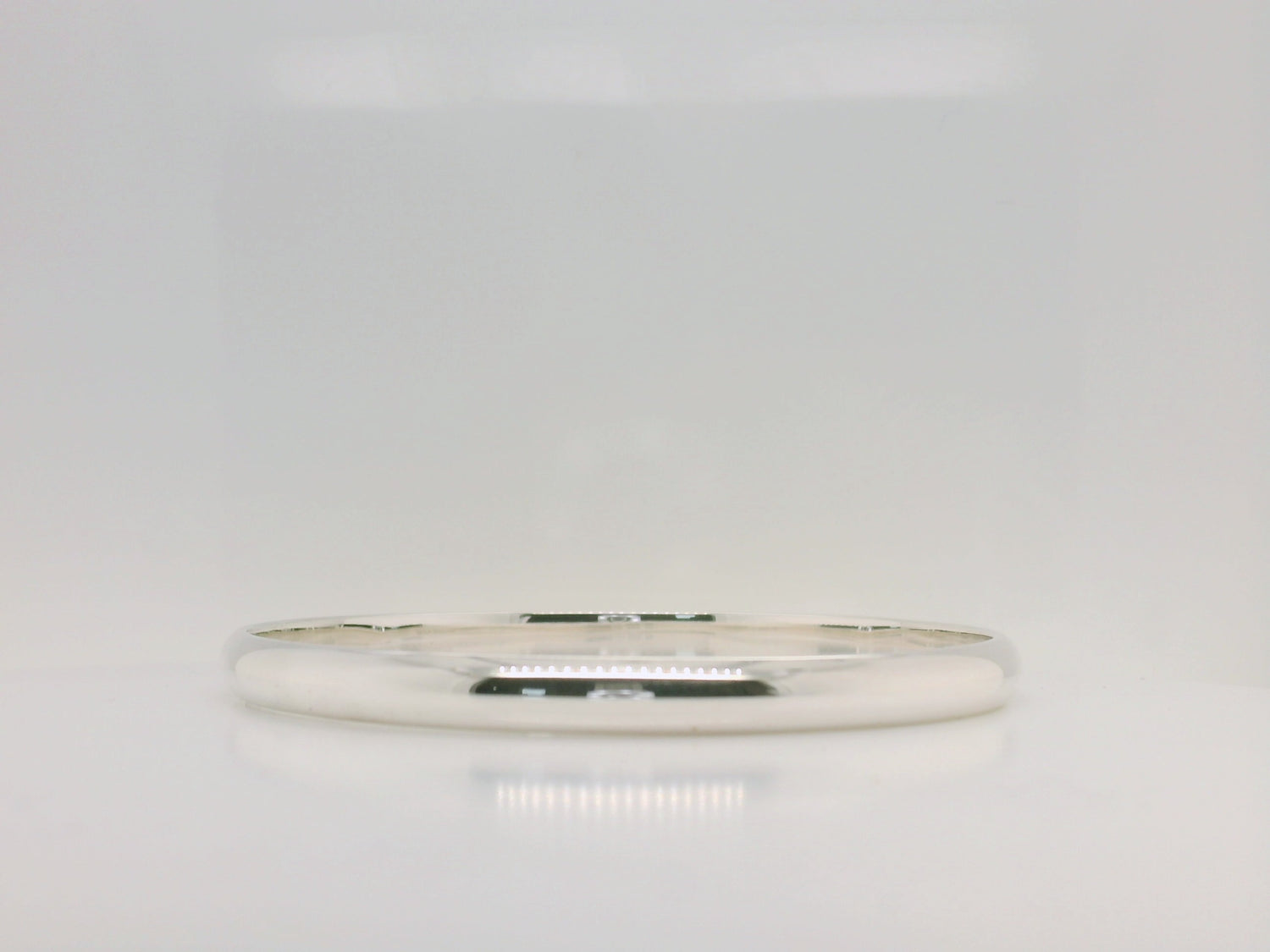 Elegant and enduring, this sterling silver half round bangle is crafted from solid silver, giving it a luxurious weight and lasting shine. At 6mm wide with a 63mm inside diameter, it offers a bold yet refined look—perfect worn on its own or stacked with other pieces for a layered style.