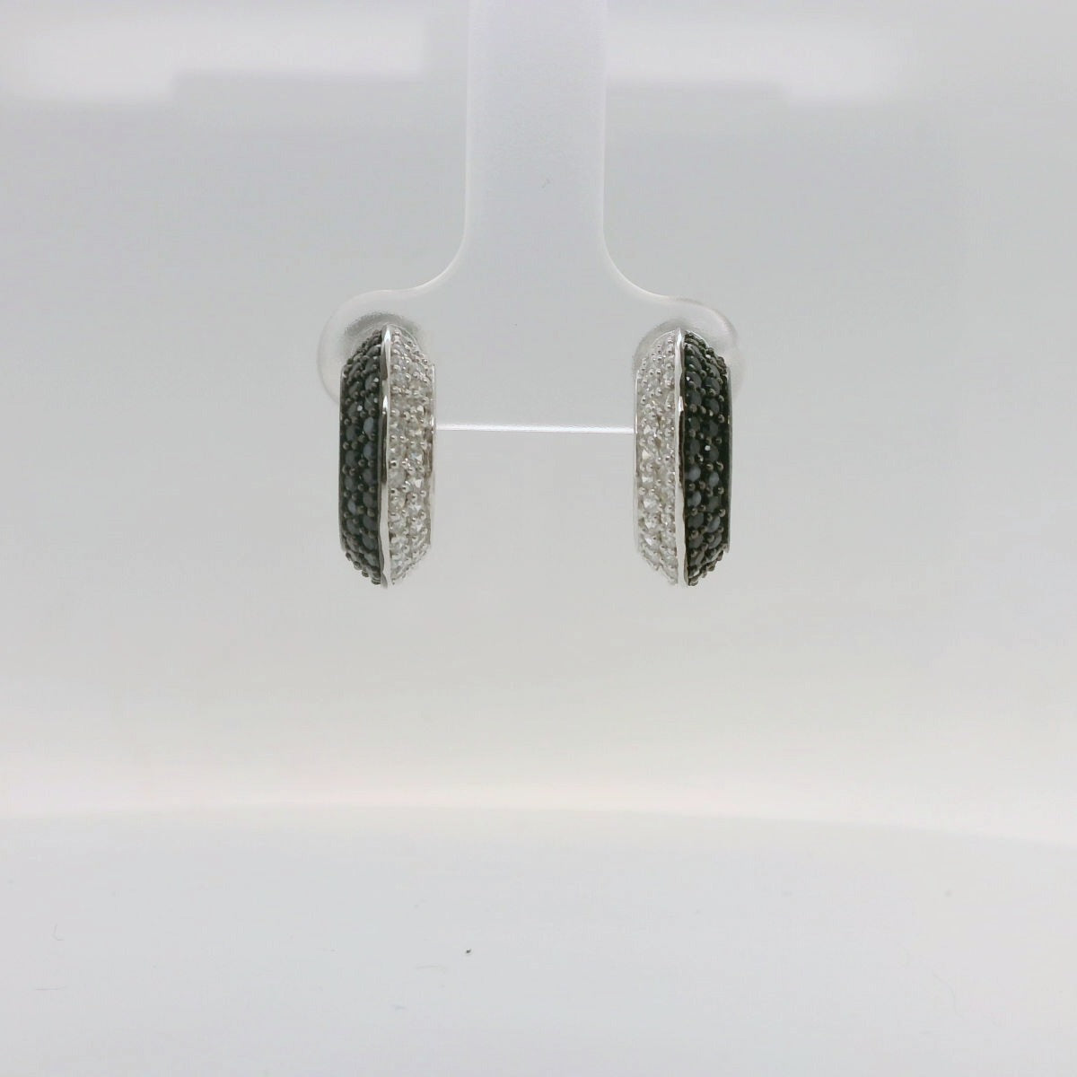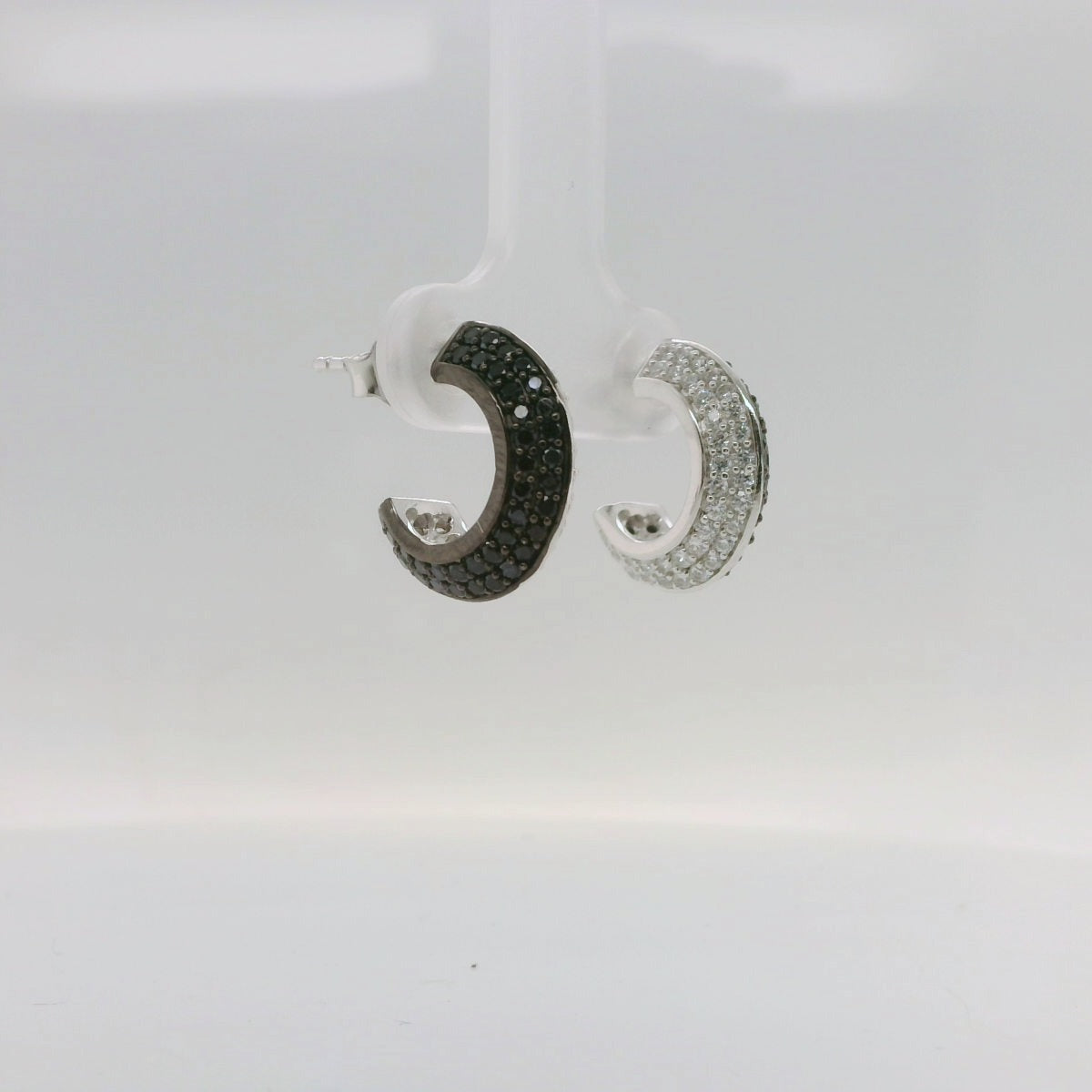 Ellani Collections - Sterling Silver split half hoop earrings, pave set with white and black cubic zirconias
