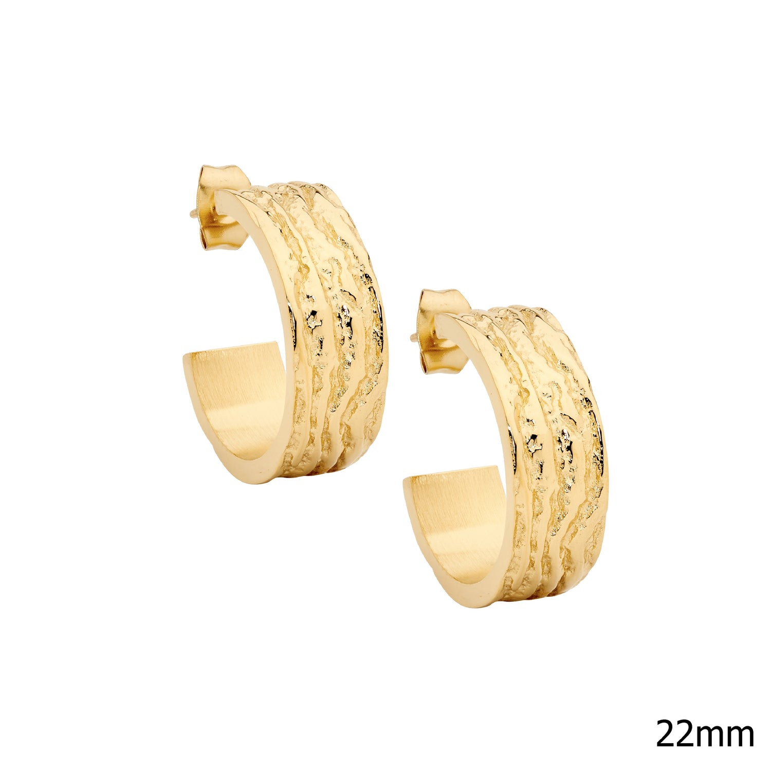 Ellani Collections - Stainless Steel yellow gold plated textured wide hoop earring