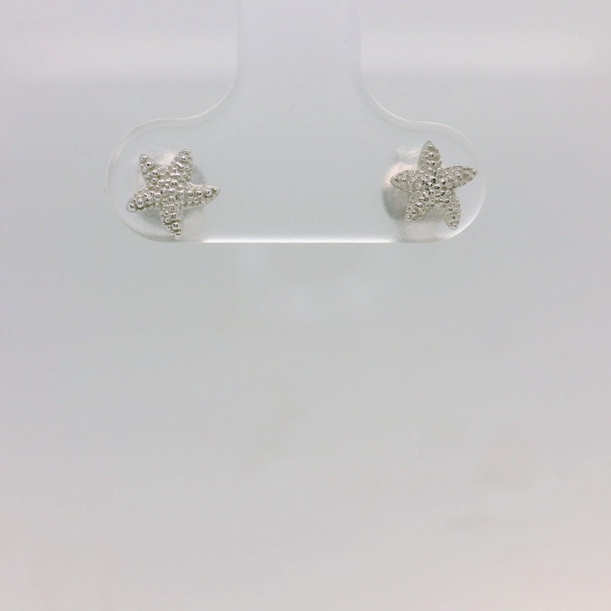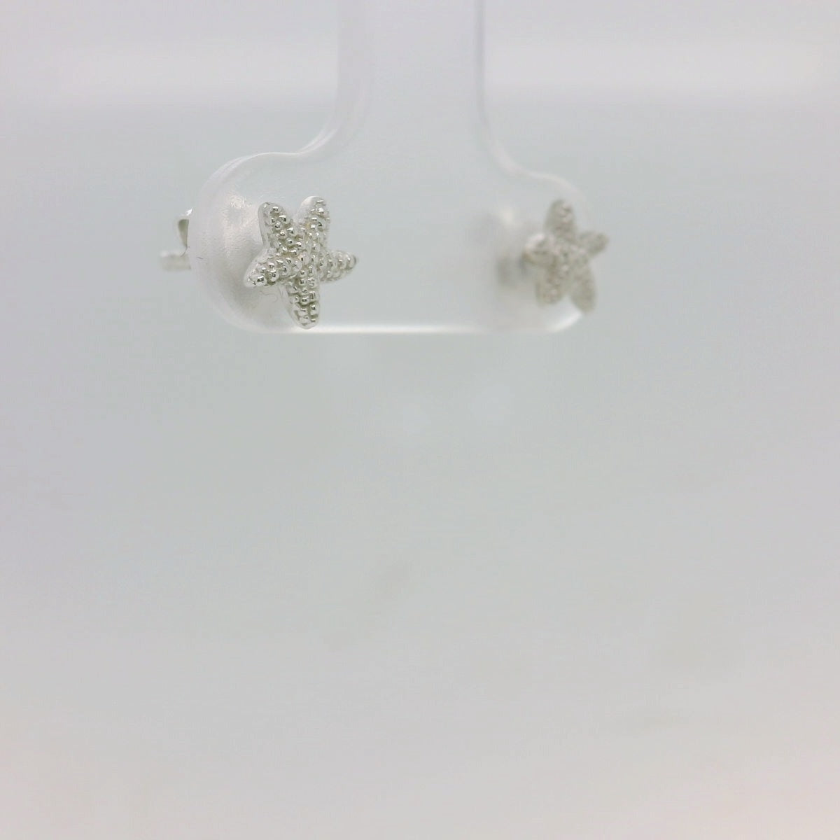 Inspired by the beauty of the ocean, these sterling silver starfish stud earrings add a playful coastal charm to any look. Delicately crafted with fine detail, they're perfect for beach lovers or those who carry a bit of the sea with them wherever they go.