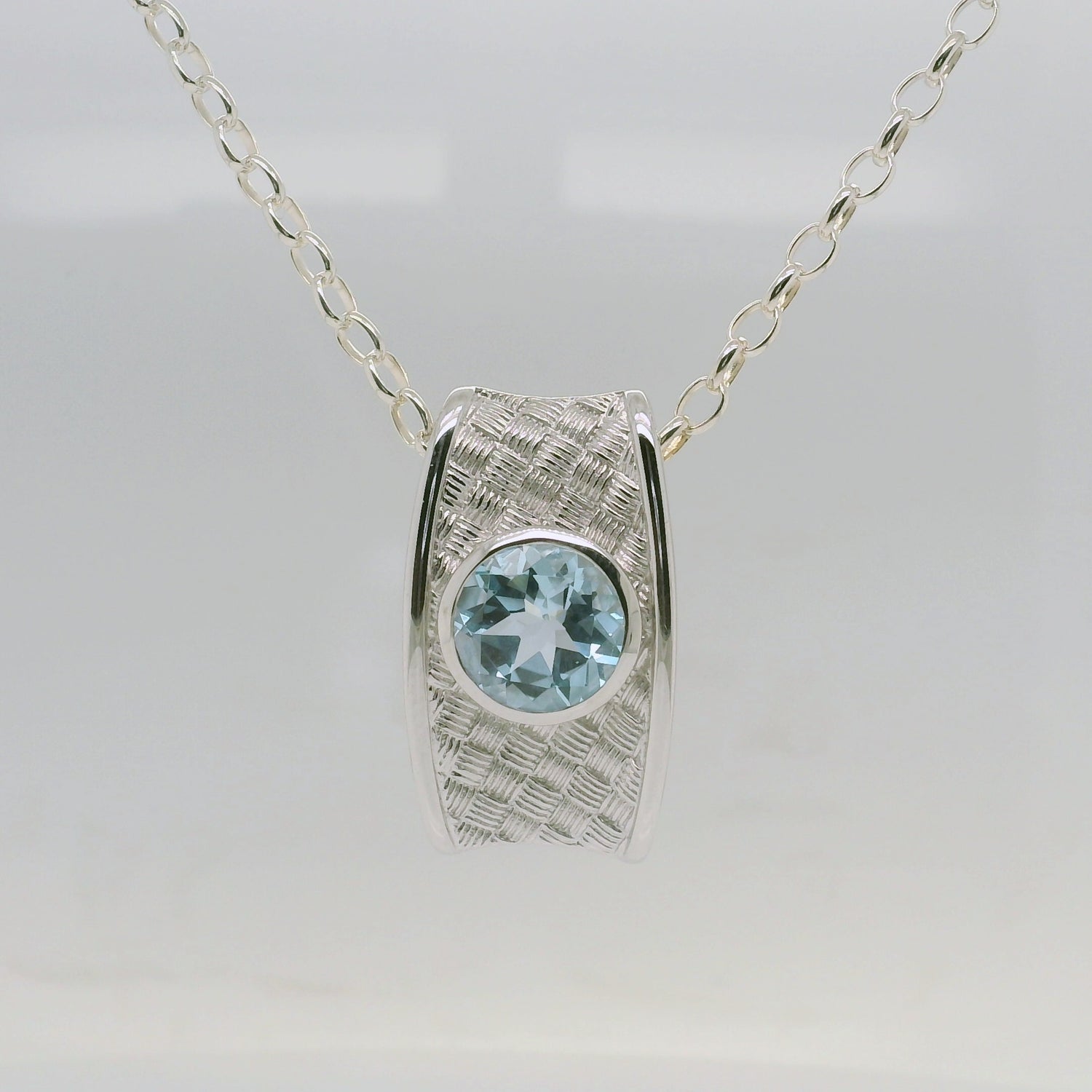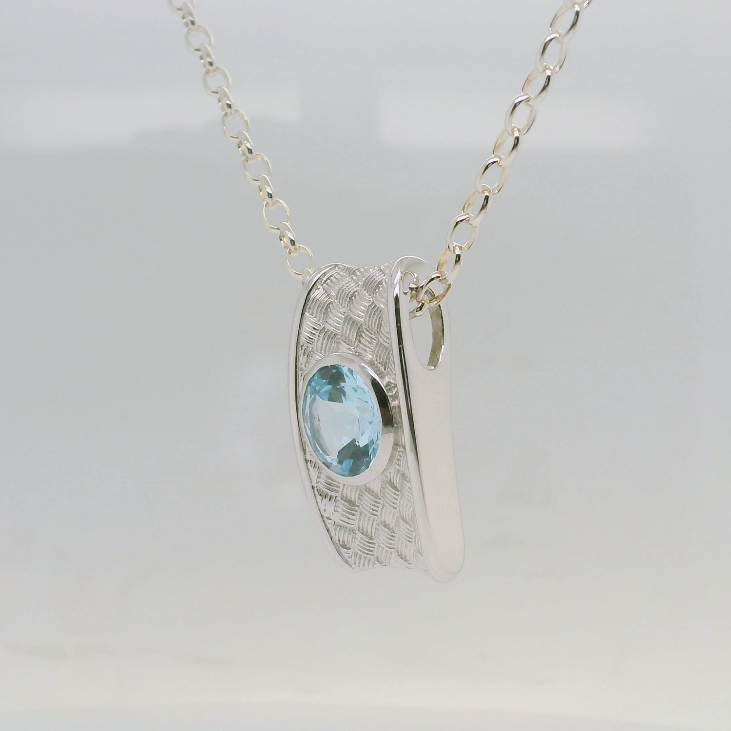 Sterling Silver London Blue Topaz Woven Textured Pendant