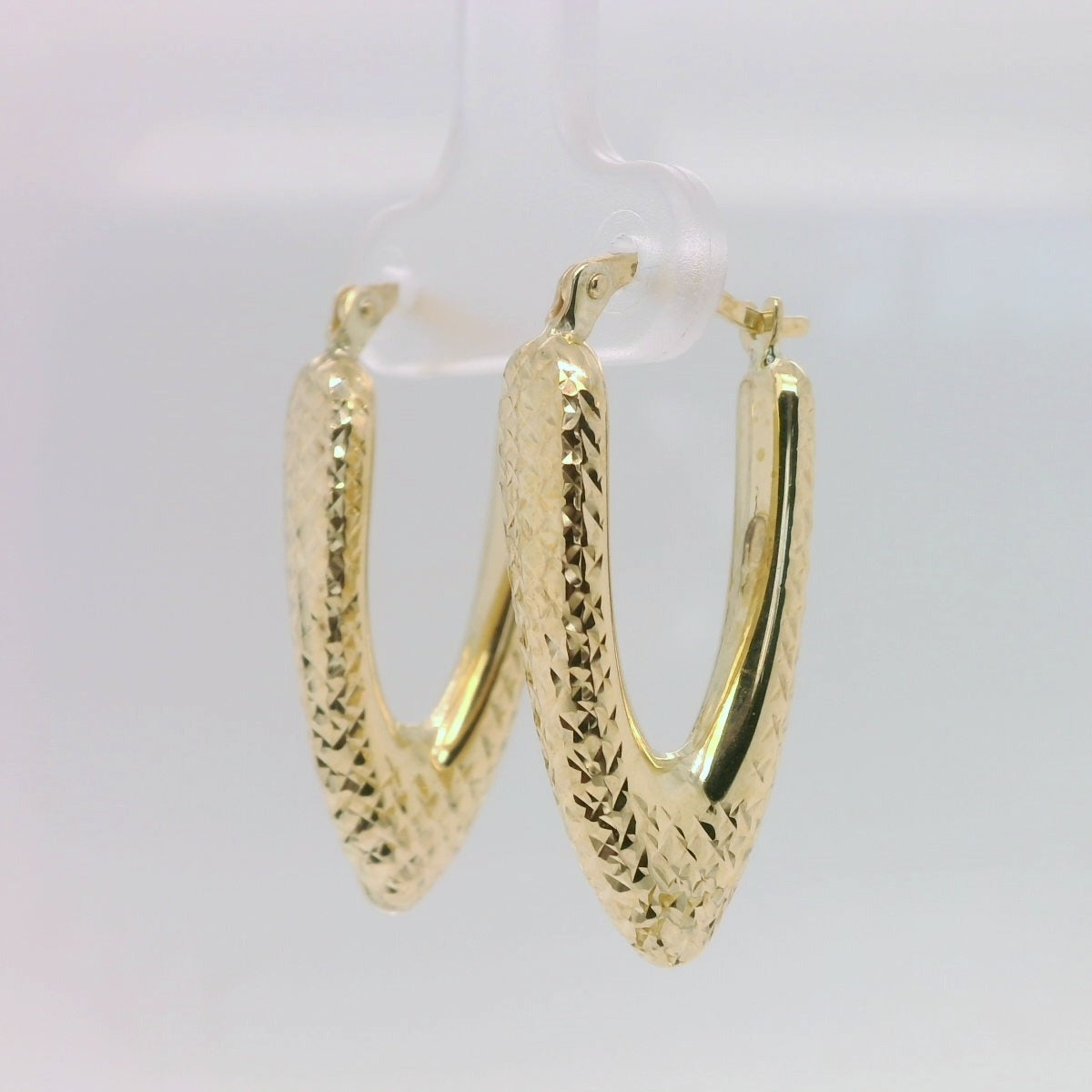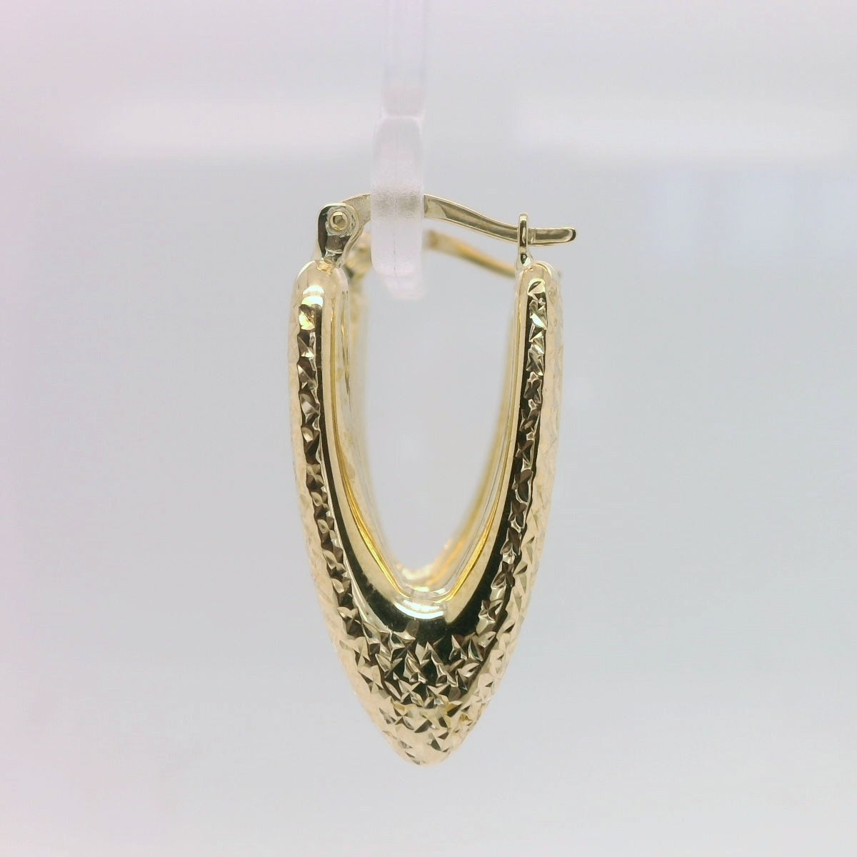 9ct Yellow Gold Elongated Textured V-Shape Earrings