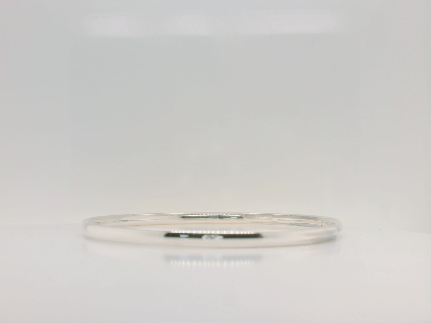 Elegant and understated, this sterling silver thin half round bangle is crafted from solid silver for a lasting shine and comfortable fit. Measuring 3mm wide with a 63mm inside diameter, its sleek, minimalist design makes it perfect for everyday wear or layering with other bangles for a chic, stacked look.