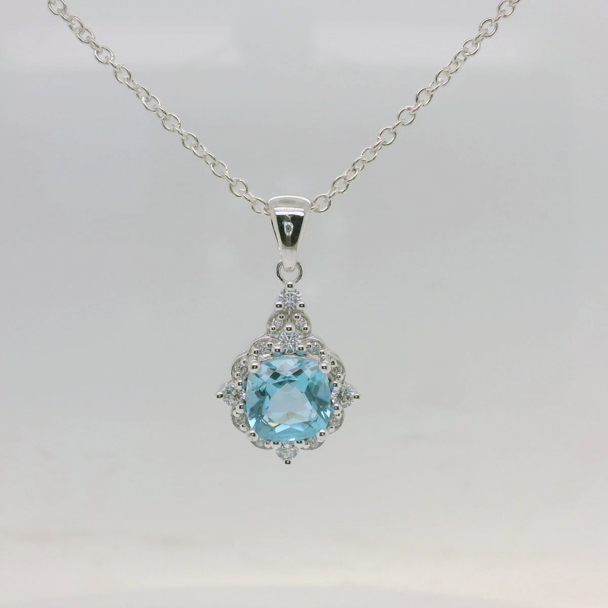 Crafted in gleaming sterling silver, this elegant pendant showcases a striking blue topaz accented with sparkling cubic zirconia for a timeless touch of brilliance. A versatile piece that adds effortless sophistication to any look. Please note: this listing is for the pendant only. A selection of chains is available in-store to complete your style.