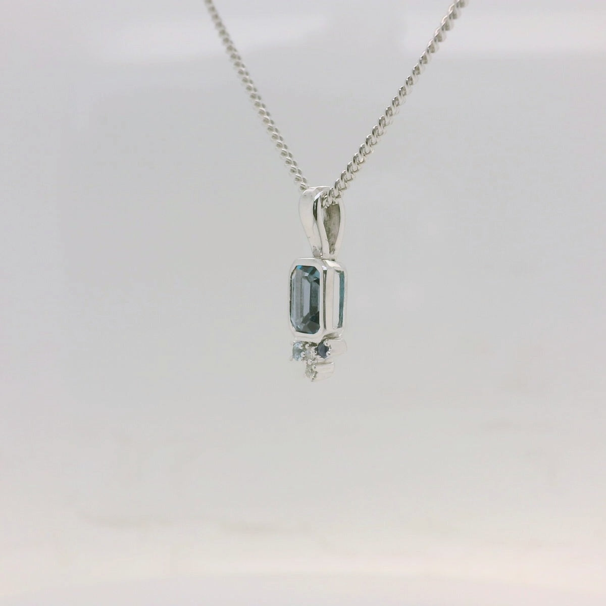 Crafted in 9ct white gold, this elegant pendant features a striking blue topaz, accented with a sparkling diamond for added brilliance. A timeless design that balances colour and sparkle beautifully, perfect for both everyday wear and special occasions.