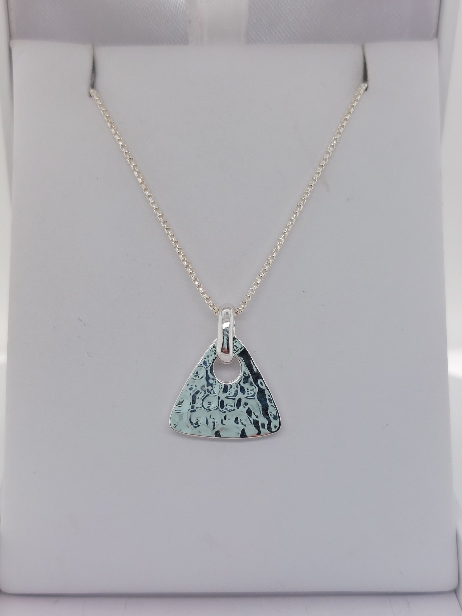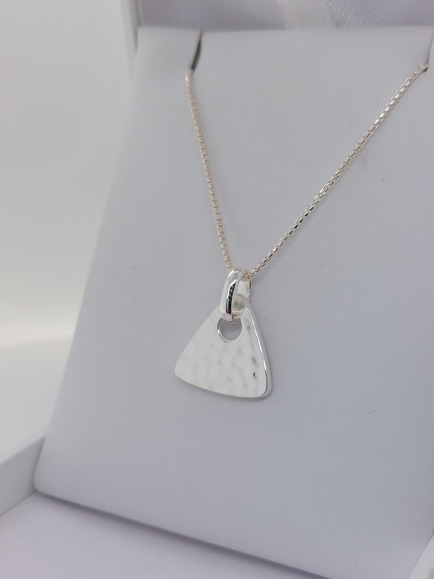 NAJO - Sterling Silver textured triangle pendant, on a fine box chain with an extension chain