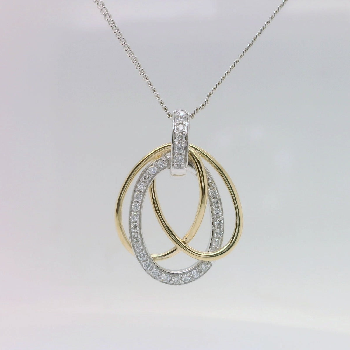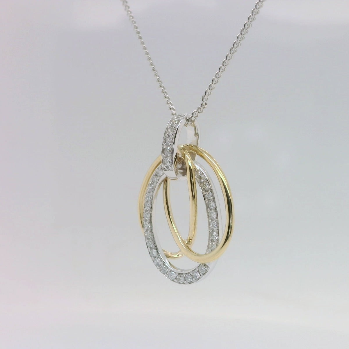 9ct Yellow & White Gold Triple Diamond Pendant on Fine Sterling Silver Chain