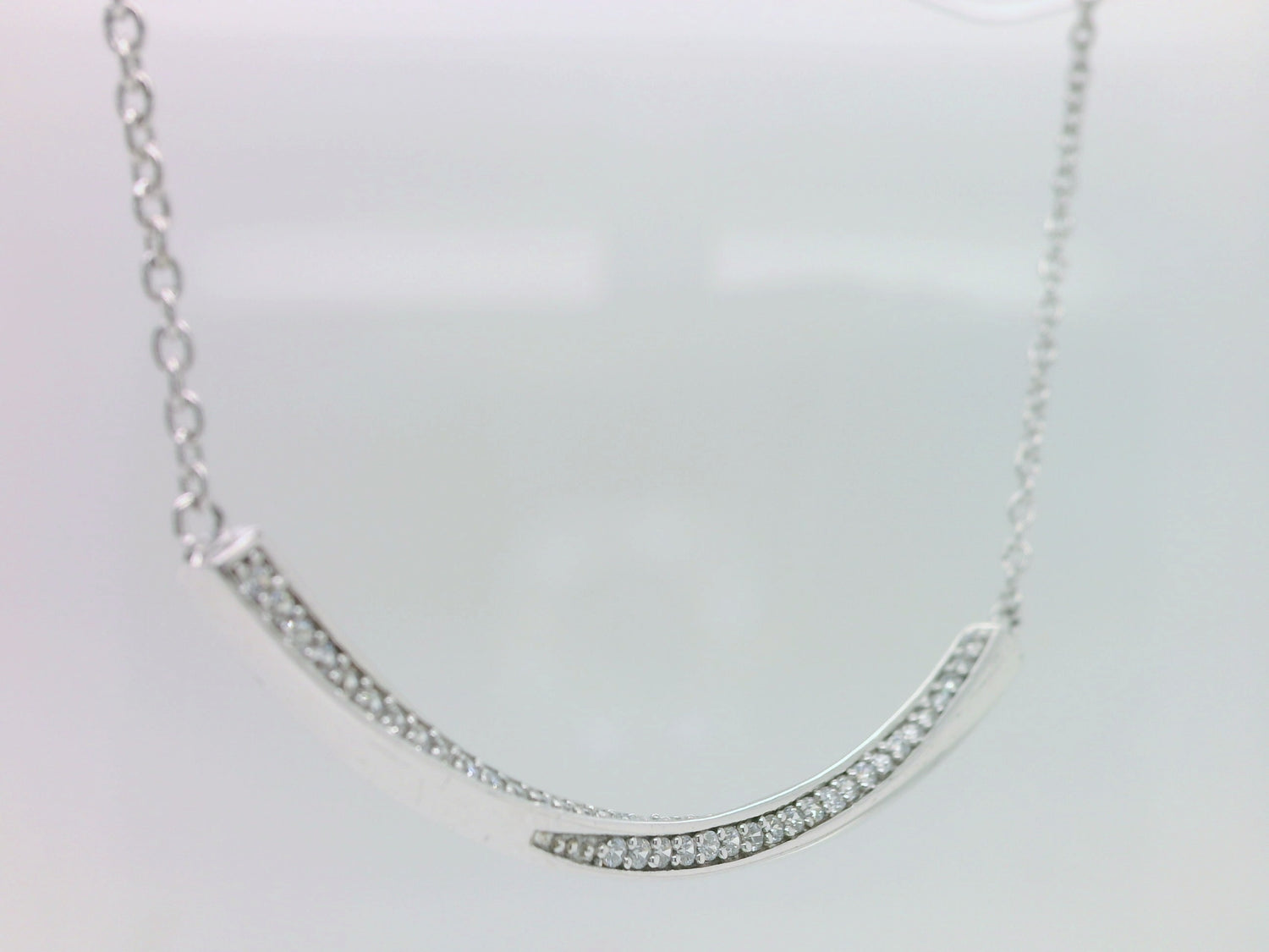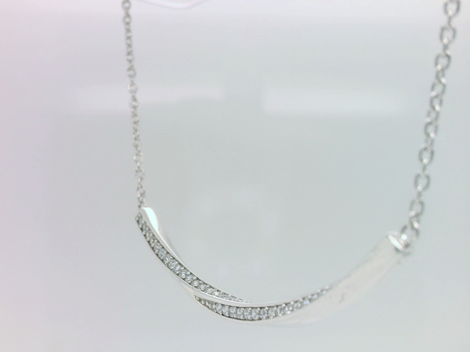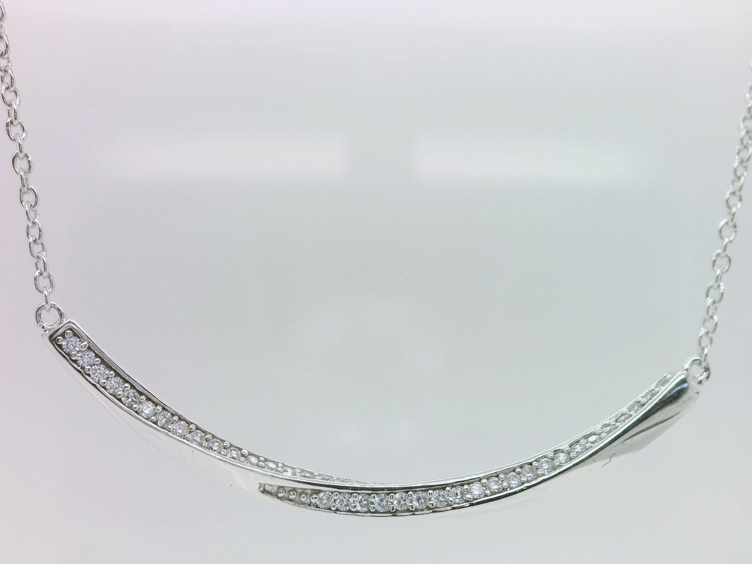 Ellani Collections - Sterling Silver twisted curve bar necklace, set with white cubic zirconaia, on a sterling silver fine cable chain with a 5cm extension chain