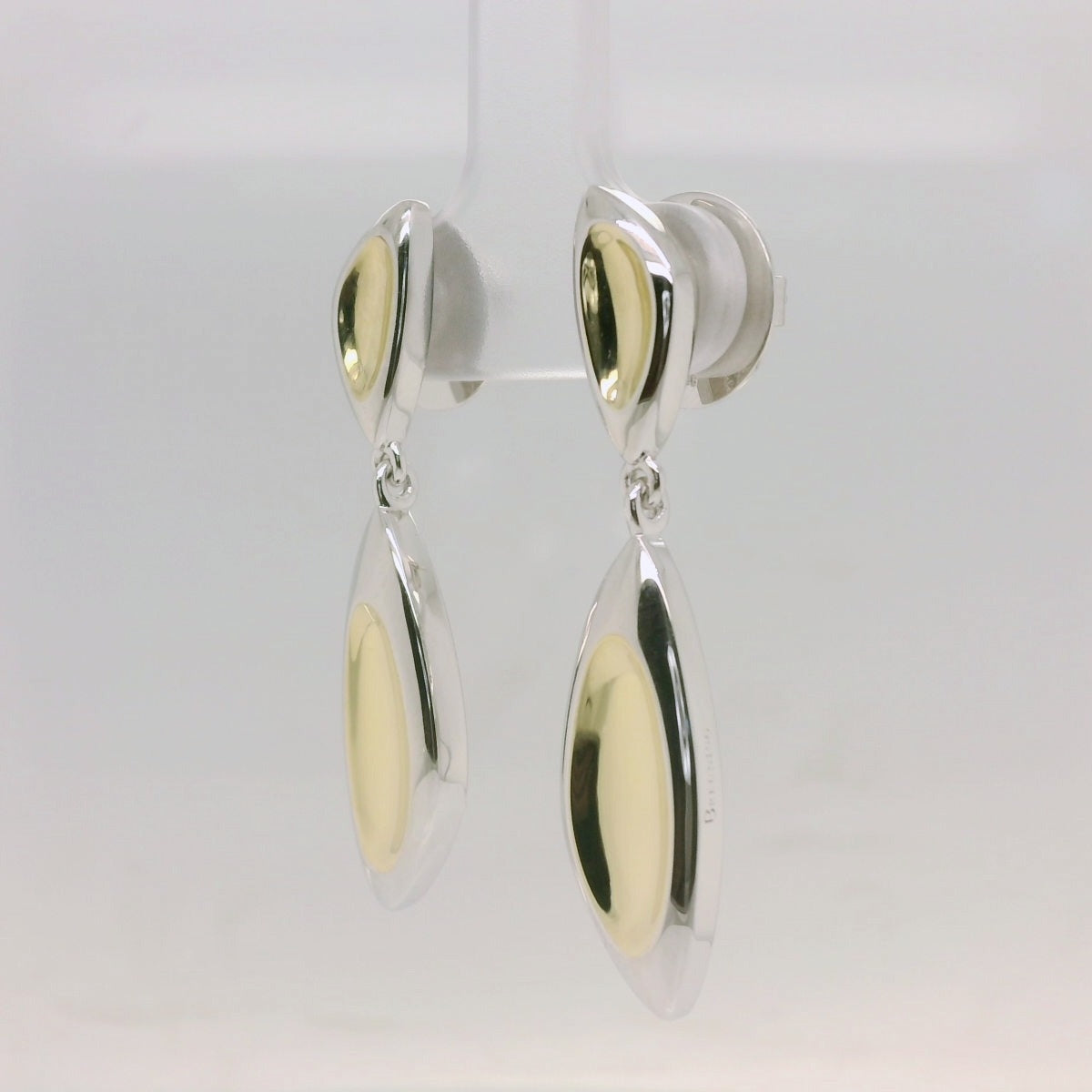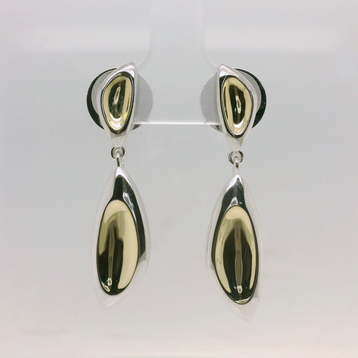 Add a touch of playful elegance to your look with these Sterling Silver Stud Drop Earrings, featuring a modern “odd bod” organic shape. Expertly crafted in rhodium-plated sterling silver, each earring showcases a yellow gold-plated drop in an abstract, fluid form—designed to reflect individuality and effortless style. The contrasting finishes create a striking two-tone effect, perfect for those who love contemporary, art-inspired jewellery.